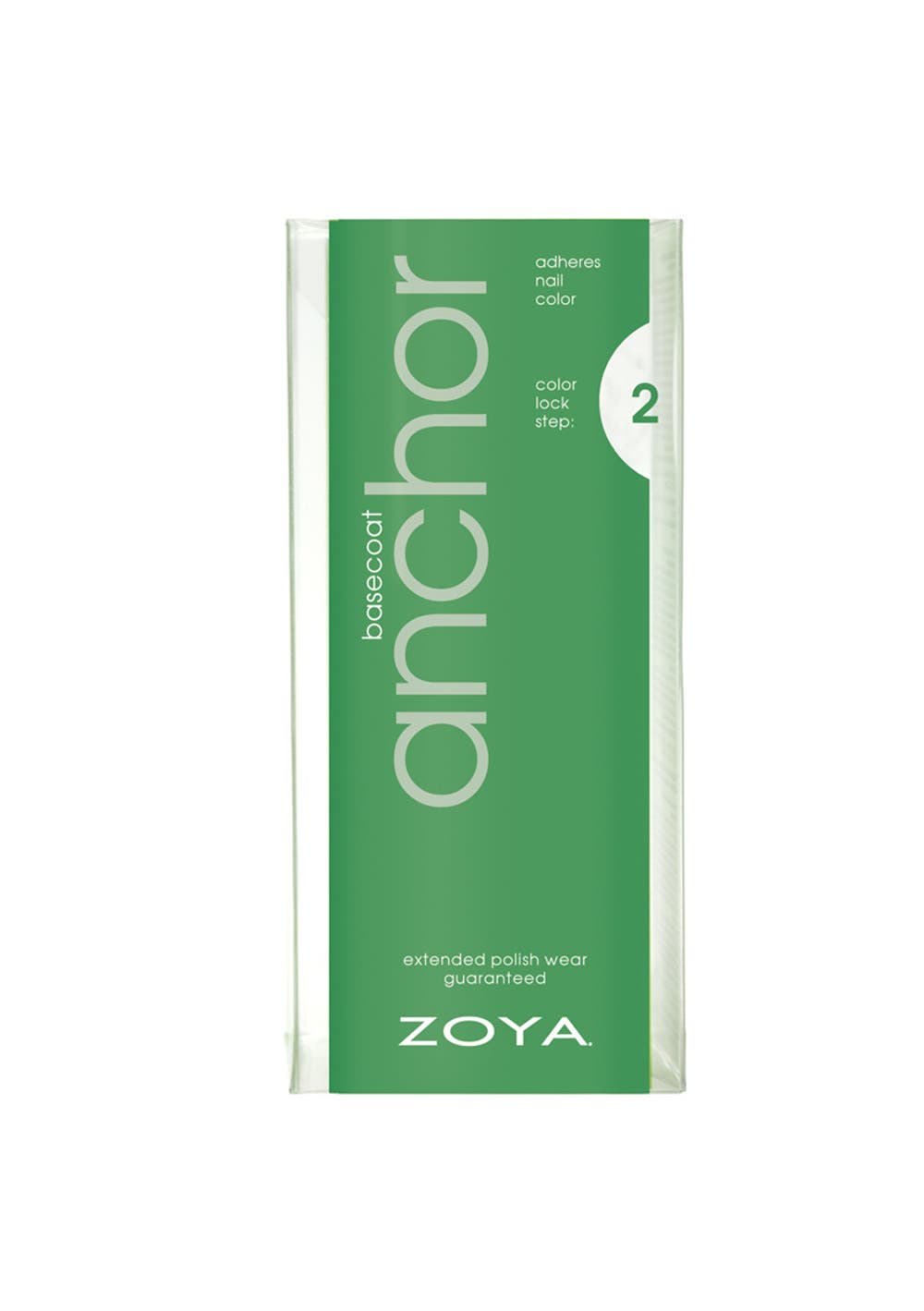 Bind color to nail with Zoya Anchor Basecoat. Polish adheres to nail by forming a bond between the nail plate and polish, preventing peeling and chipping. As an added bonus, complex protein chains strengthen nails.