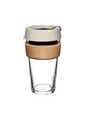 Press fit lid, lovely to drink from lid on or off. Natural cork band. Durable tempered glass. Drafted vessel for easy pour. Designed to enjoy the craft and sensory drinking pleasure of coffee on the go.