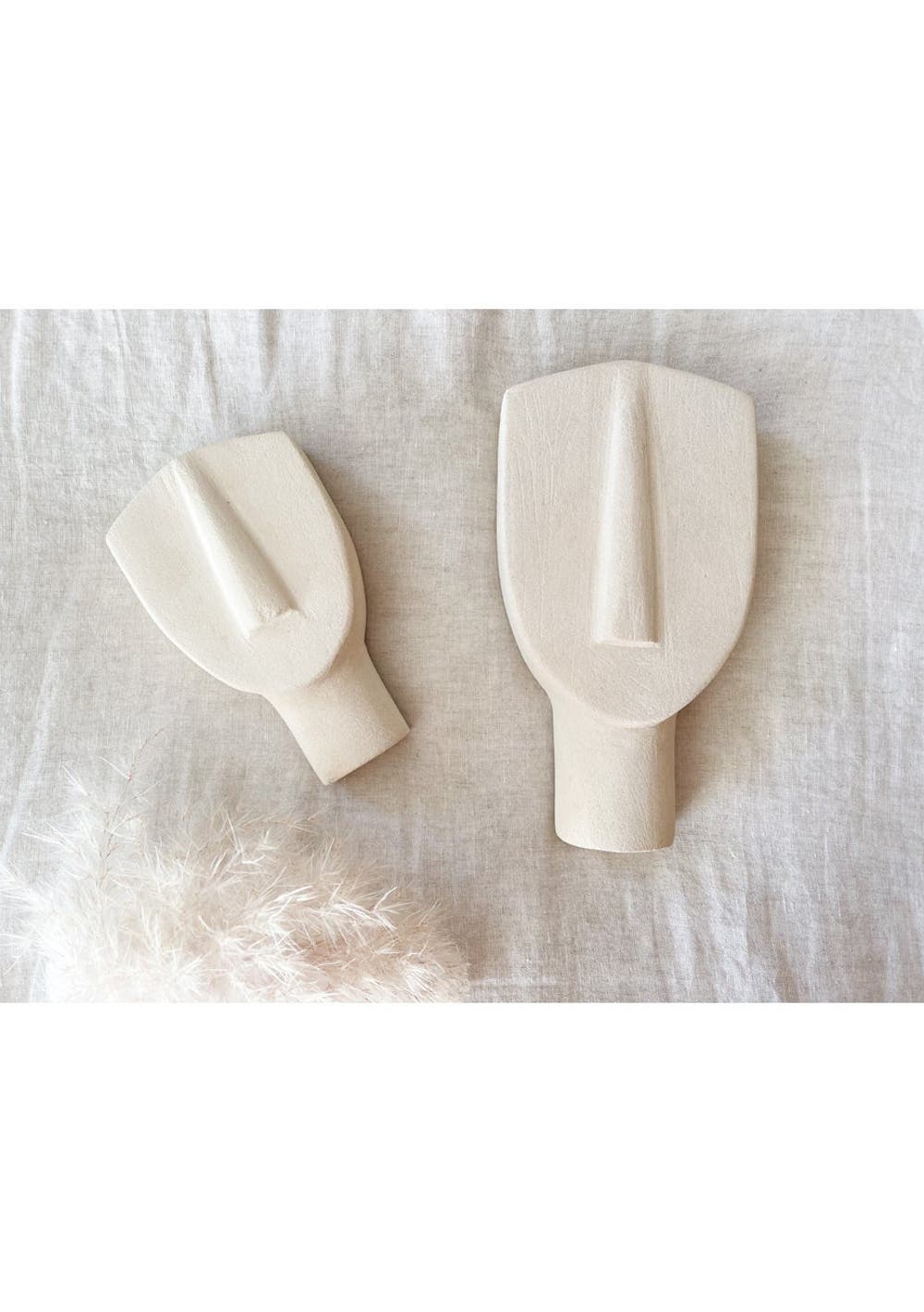 FACELESS. These funky statues will look great in a large and small combo. Material: Sandstone White Large- 5cm.L x 10.5cm.W x 20cm.H