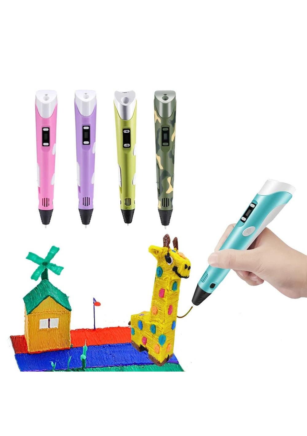 Feature Full of Technical design and electroplating design smooth lines, more comfortable to use. Using high-tech and environmentally friendly consumable,breaking through the traditional two dimensional space, creating a 3D concept, and it can be formed in 3 second. Can improve children's imagination , creativity, concentration and exercise logical thinking, increase parent-child relationship. How to use: Insert the power supply. Press and hold the power on. Press the up and down keys to adjust the consumable mode PLA/ABS. Press the feed key to confirm the mode. Insert the consumable for 3D drawing. Press the return button to shut down. Note: During use, please make sure parents are using it together to prevent children from accidentally touching the pen tip and causing injuries. Wait for 1-3 minutes for the first time to use, allow the pen to fully heat until the indicator light changes from yellow to green. Specification Material: ABS+ PLA Color: blue / pink / yellow / purple / camouflage Working voltage: 5V 2A Rated voltage: DC 5¬±0.25V Adapted consumable: PLA 1.75mm/ABS 1.75mm Working conditions: 10 -35 /relative humidity: ‚85% Printing temperature: 180 -230 Discharge method: click the button to continue discharging Size: 19*3*4.5cm Age: suitable for 14+ Pack list 1* Pen 1* USB cable 10* 10m PLA Filament 1* Pen holder 1* Manual