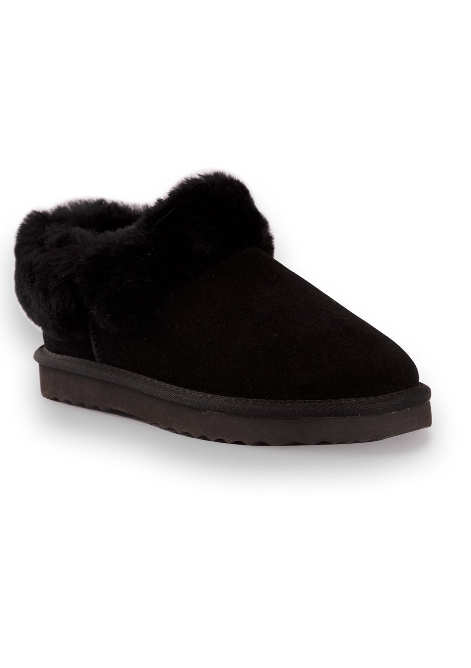 Aus Wooli Ugg Unisex Sheepskin Wool Traditional Ankle Slippers - Black