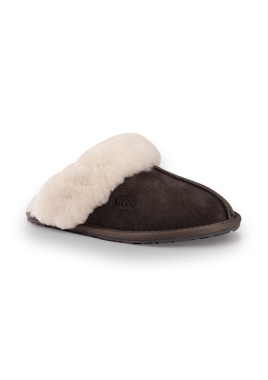 Aus Wooli Ugg Unisex Sheepskin Wool Shelley Slippers - Dark Grey
