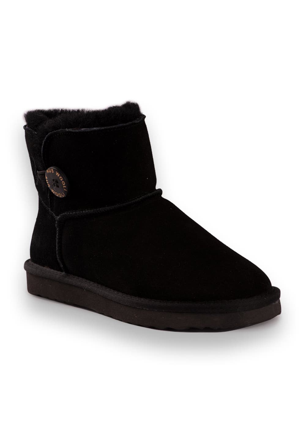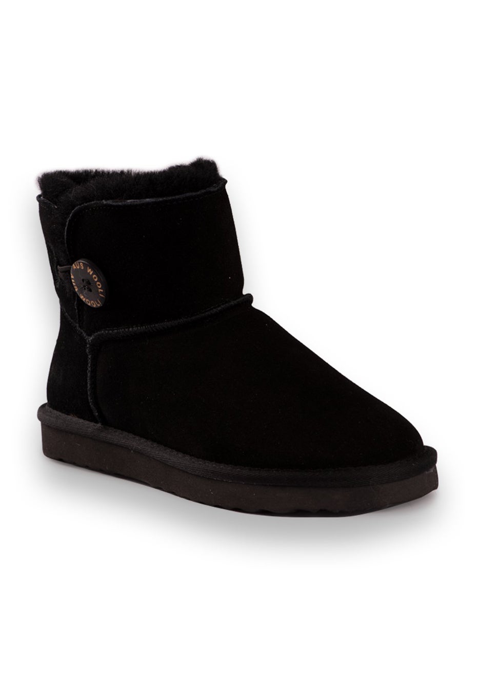 Aus Wooli Ugg Short Sheepskin Button Boot - Black