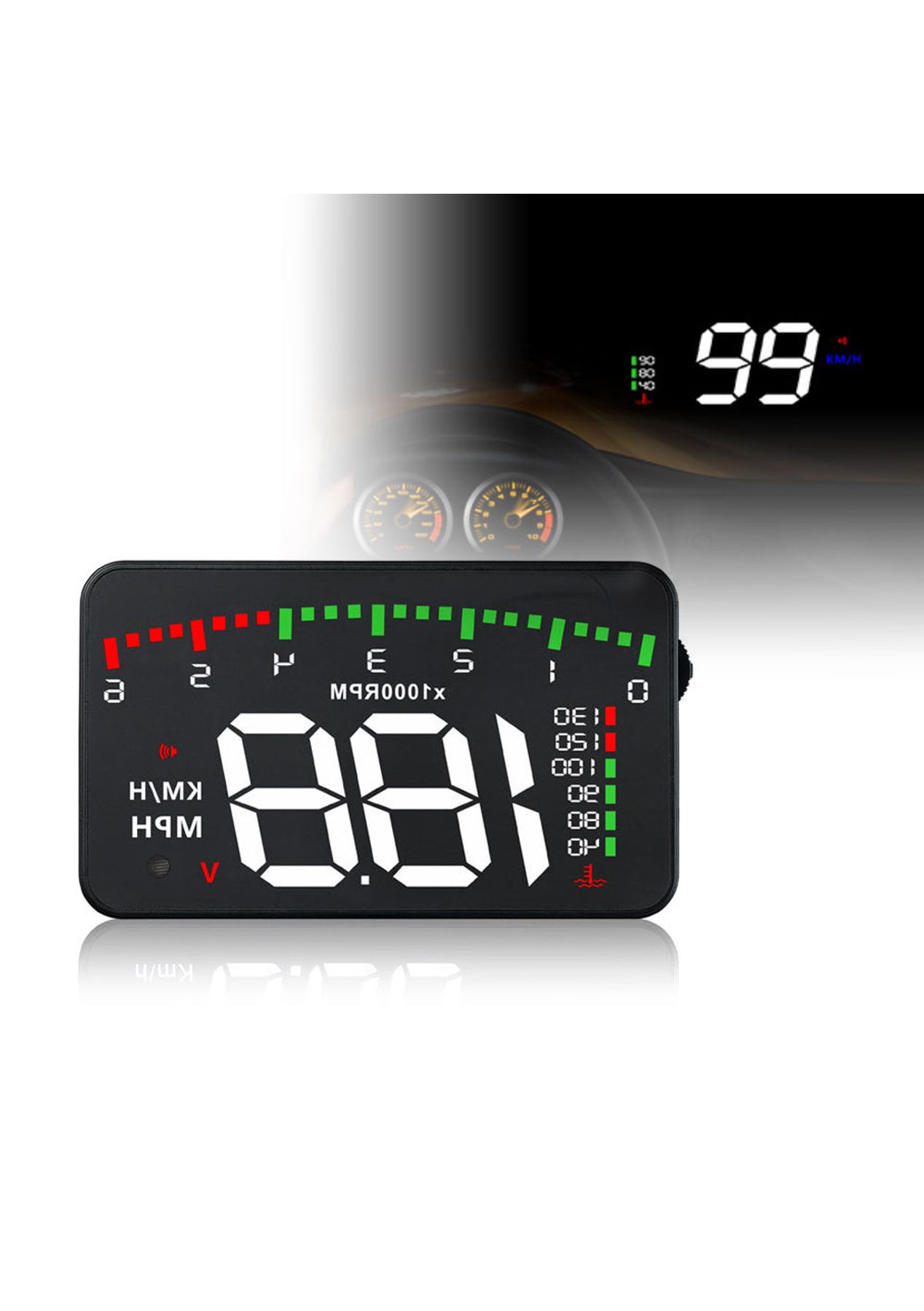 Product Description: Display for safe driving- The driving data can be displayed on the windshield clearly by brighter reflection to avoid drivers’ unsafe driving because of watching the instrument. Drivers can see the driving information instantly while keeping the best driving state. Alarm function- With alarm functions, informs you when there are unsafe driving occasions including low voltage, over speed driving, and over temp, ensures your driving safety. Multiple display features- Multiple major car information displays, including driving speed, engine RPM, water temp, and so on. with alarm functions, alarm you when there are unsafe driving occasions, endure your driving safety. Widely compatible- The head-up display works for most cars with standard OBD2 produced after 2007. Check your car label, if there there is OBD2 certified, you can use the head-up display. Easy installation- Connect the HUD to the OBD interface, and put the HUD in the dashboard, then hide the cable, refer to the blue dotted line, finally stick a reflective film on the windshield, then the device can work well for you. Product Specification: Color: Black Material: ABS, PC Size: 90*54*12 mm Weight: 280g Display Size: 3.5 inch screen Rated Power: 12V Package Inclusion: 1 * HUD System 1 * User Manual