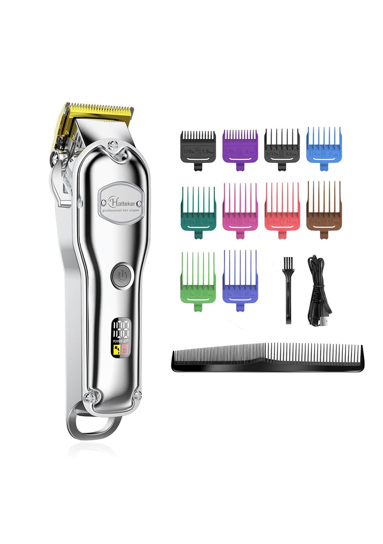 Product Description:This hair clippers set contains professional hair clippers and a detail trimmer. Whether you’re staying at home, or have no salon nearby, or trying to save time or money, the professional clipper kit offers an easy way to cut your hair, which is also the first choice of the barber or stylist.These hair clippers have a powerful and durable motor that provides a lifetime of superior performance. Not only suitable for children and men to use at home, professional hairdressers can also use this machine.The hair clipper is equipped with new 10 colored guide combs, which enables more customization and lets you try a variety of hairstyles using a single hair trimming device. The hair trimmer supports a USB charging interface. It comes with a built-in 2000mAh battery, which takes about 3 hours to fully charge, giving you up to 300 minutes of working time. Product Specification:Color: SilverBlade material: stainless steel bladeSize: 8 x 4 x 3cmWeight: 500gFunctions: Hair TrimmerUsage Time: 300 minsCharging Time: 3 hoursBattery Information: 2000mAhPower voltage: 100-240V Package Inclusion:1 * Hair clipper10 * Guide Comb1 * Cleaning Brush1 * USB charging cord 1 * User Manual