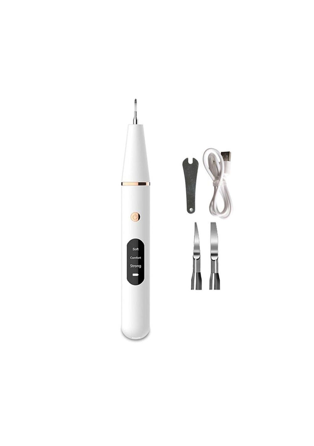 Product Description: The sonic Tooth Cleaner can effectively separate dental plaque, dental calculus, and stains. It effectively removes accumulated tartar easily from the teeth preventing gum disease and tooth decay. It uses the advanced ultrasonic technology. It works with 30000 times per minute high-intensity frequency, effectively smashing the stubborn calculus, reducing the incurred damages to the tooth’s enamel and gum, which may be caused by manual dental tools. This Electric Tooth Scaler is equipped with 3 intensity levels, enabling the product to meet and address the different dental needs of different groups of people, perfectly suitable for adults and kids. The Oral cleaner is equipped with 500mAh built-in Polymer battery and can recharged fast and safely through the use of the USB charging cable that is included in the package. A single full charged can be used about 200 times, so you can bring it into your travels without worrying about power loss. This dental cleaning tool comes with an HD LED screen, auxiliary LED light and a silicone handle. It has a smart memory function, which automatically selects the last shutdown mode when it is opened. It automatically turns off and stops absorbing current once it is fully charged. This Electric Tooth Cleaner is made with food-grade PC, ABS, and 304 stainless steel head, making it safe to use. It also has a waterproof level of IPX6 level so sudden splashing of water will not damage the product, but please take note that the product should not be submerged in water. It is the low-cost solution in comparison to the dentist and ideal to keep it handy in the bathroom or to take with you when you travel. Product Specification: Color: White Material: ABS, PC Size: 189 * 24.5 * 25mm Weight: 85g Functions: Dental Scaler Usage Time: About 200 times Charging Time: 2.5 hours Battery Information: 500mAh Charging Voltage: DC5.OV Rated Current: 0.15A Rated Power: 0.8W Operating temperature: 0-40℃ Package Inclusion: 1 * Host 1 * Pointed Elbow 1 * Flat Elbow 1 * Open End Wrench 1 * Charging Cable 1 * User Manual