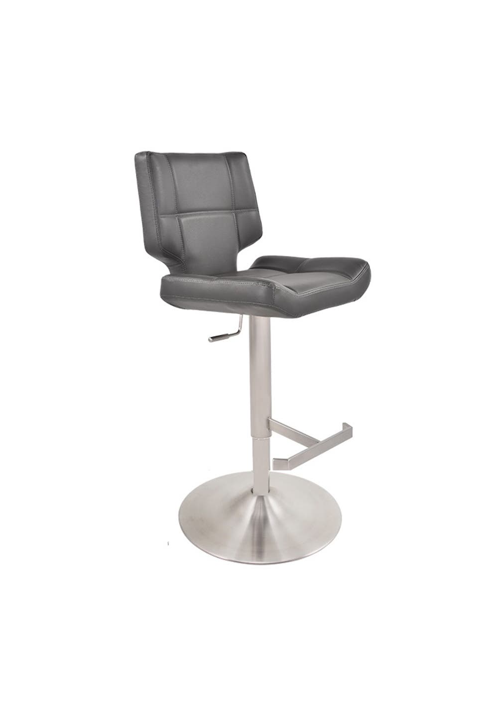 The highly stylised Hamilton Barstool features a distinct, padded seat top with back rest and brushed stainless steel trumpet base with footrest. Height adjustable and with a swivel function, this contemporary barstool will bring a touch of high end flair to any kitchen or dining space. Additional Information Colour: Black Warranties: 2 Years Product Measurements: Seatback height 720-1140 seat 460-880 base 450