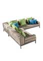 The beautiful Barite Outdoor Corner Suite features a low back design for a modern, relaxed look. The frame is built from powder coated aluminium and the seat cushions are hardwearing, fade resistant and quick dry. Ideal in a range of outdoor aesthetics from ultra modern to traditional and everything in between. Includes scatter cushions. Coffee table not included Additional Information Colour: Grey Frame, Sandstone cushions and C205 weave Warranties: 2 Years Fabric: Quick dry foam Product Measurements: Sofa L2630xW2630xH630, Coffee Table L700xW700xH430