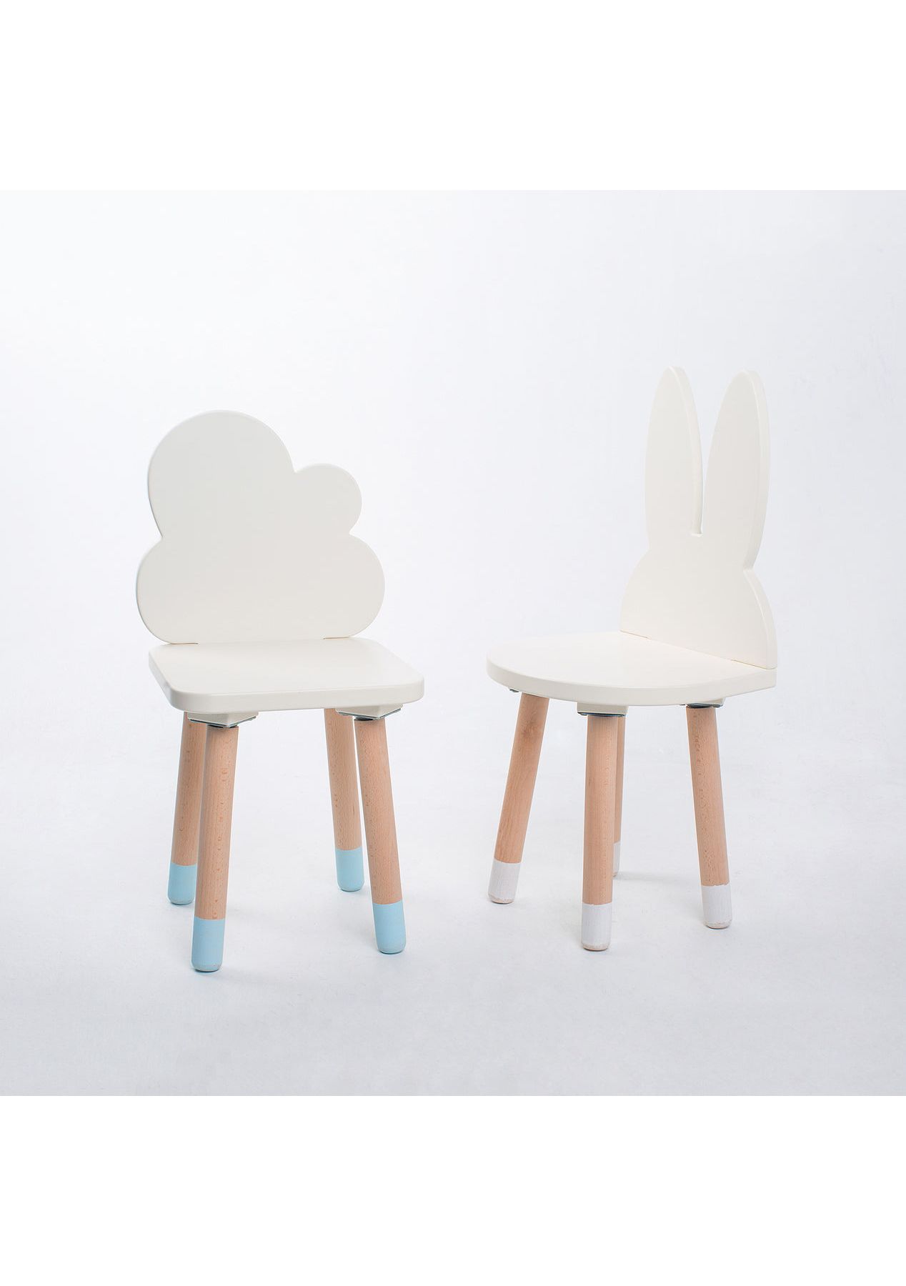 We have 4 different style chairs available: Cloud / Rabbit / Crown / Bear Price is for each chair. Upgraded chairs! Legs are slightly wider than before. More stable than ever. Material: Beech+Environmental Fibreboard+non toxic enamel paint which meets EU product safety standards. Chair Size: Cloud: 51 x 25 x 25cm Rabbit: 56.50 x 25 x 25cm Crown: 53 x 25 x 25cm Bear: 48 x 25 x 25cm Seat height is 26cm. This is a great product for any kids from one year old to primary schoolars, can easily fit up to four kids with each kid has his own side to do activities on. Non-toxic, no peculiar smell. Very easy to assemble. Comes with rubber feet for the chair.