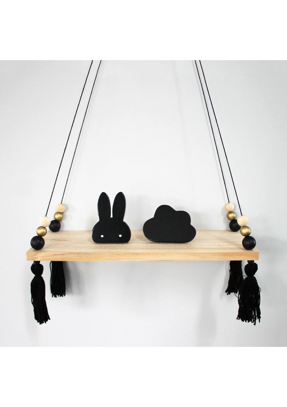 Nordic Style Kids Room Hanging Decoration /Display Shelf Wood Shelf Storage Box Rack Household Accessories 100% handmade Weight: 0.95 KG Size: 40L x 15W x 2 T cm Color: Black & GoldMaterial: NZ PINE *Accessories not included