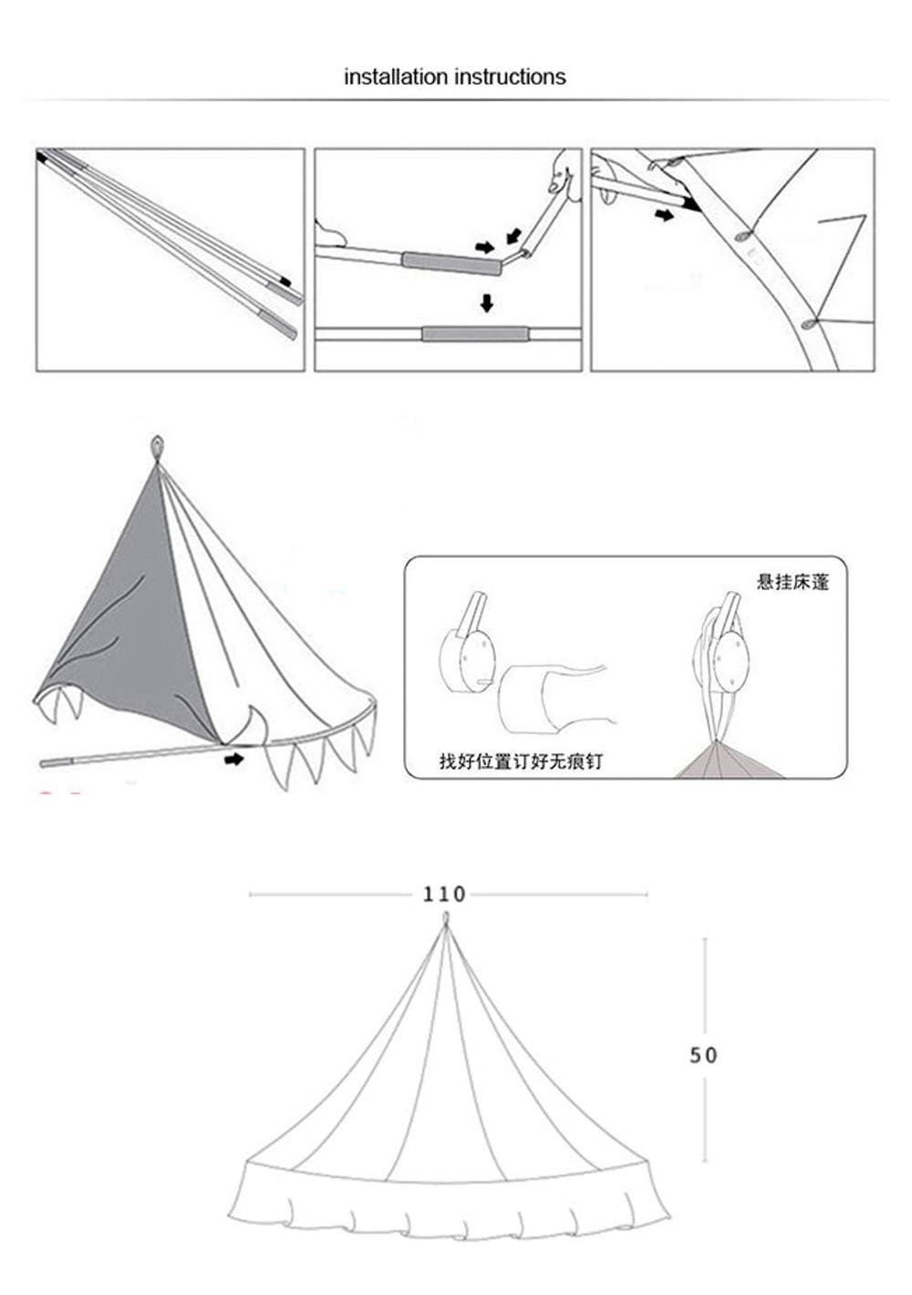 Create a place for children to have some quite time, where they can sit down, relax, and read a book. A bed canopy gives privacy and creates a room-in-room feeling. Can also be hung alone on the wall and at a lower height to make a cozy spot where your child can sit and play or read.Whether over their bed or as a fun playroom accent, this canopy is a magical addition to your little one's space.Details· Material: Cotton ·Usage: Suitable for indoor, bed net, reading nookSize: 230cm Long x 110wide Tips· Separate them into dark and light color batches, when wash.· Maximum permissible size errors are ±3 cm, DO NOT affect fitting.· Wash Method: Machine wash cold, gentle cycle. Water temperature should not exceed 30°C.· Please hang dry. Do not bleach. · Tumble dry low, remove promptly, do not iron.· Do not put liquid laundry detergents on the bedding directly, should dissolve it in the water first.