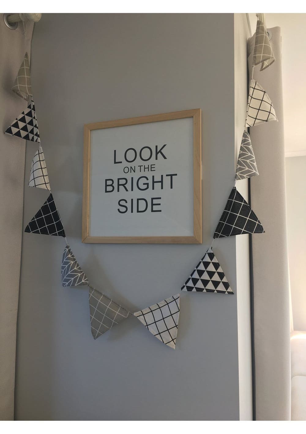 Handmade Cotton Fabric Bunting Pennant Flag Banner Garland Wedding/Kids Birthday/Baby Shower /Home Party Supplies They are handmade, and can be washed, so that you can use them again and again.It is perfect for weddings, christenings, parties, fetes, Halloween, Christmas and any special occasion or just to hang in your child's room or the garden. They are 12 Flags in total, each side of the triangle is 13-14cm. Total length is 4 meters long.