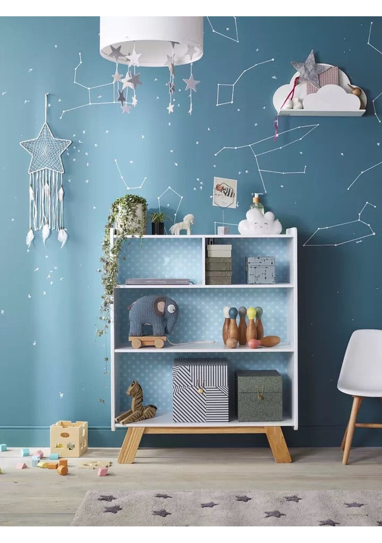 93% New! Pick up from Hobsonville, Auckland Only. No delivery for this item. Most Kiwi kids have at least one bookshelf regardless of the number of books in the home. Here we have another amazing bookshelf for your little one to maintain a tidy room. DIMENSIONS: Height 100 x width 76.6x depth 30cm MDF +Wooden feet 3 shelves: 2 large + 1 with 2 compartments Silkscreened stars in the bottom of the shelf WHAT THERE IS TO KNOW : A self-assembly To be fixed to the wall for the safety of the child Color: white / wood (see as photo)