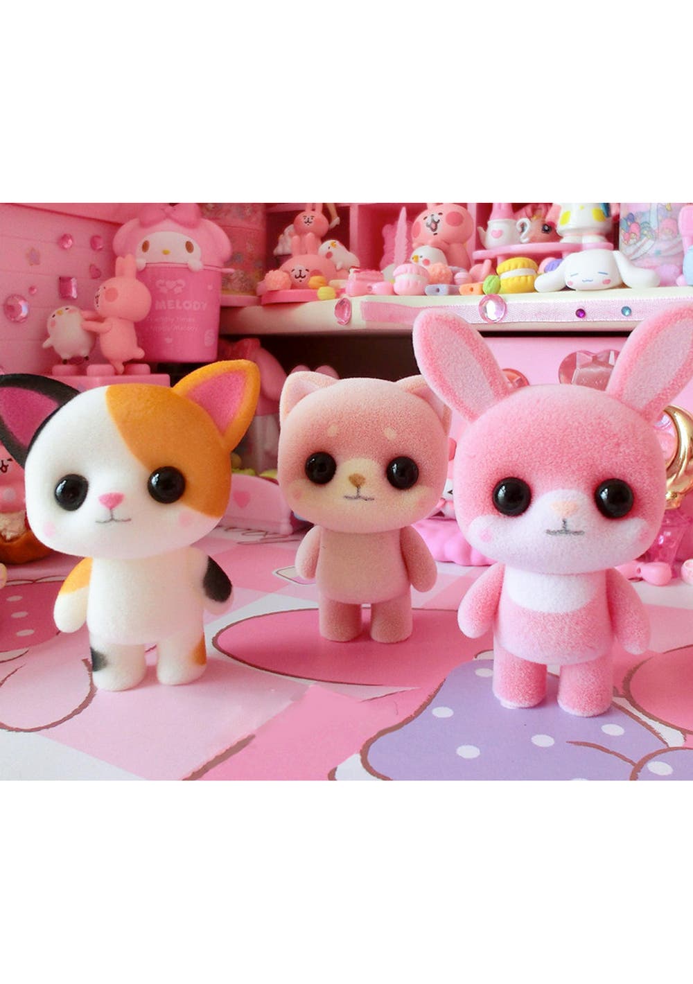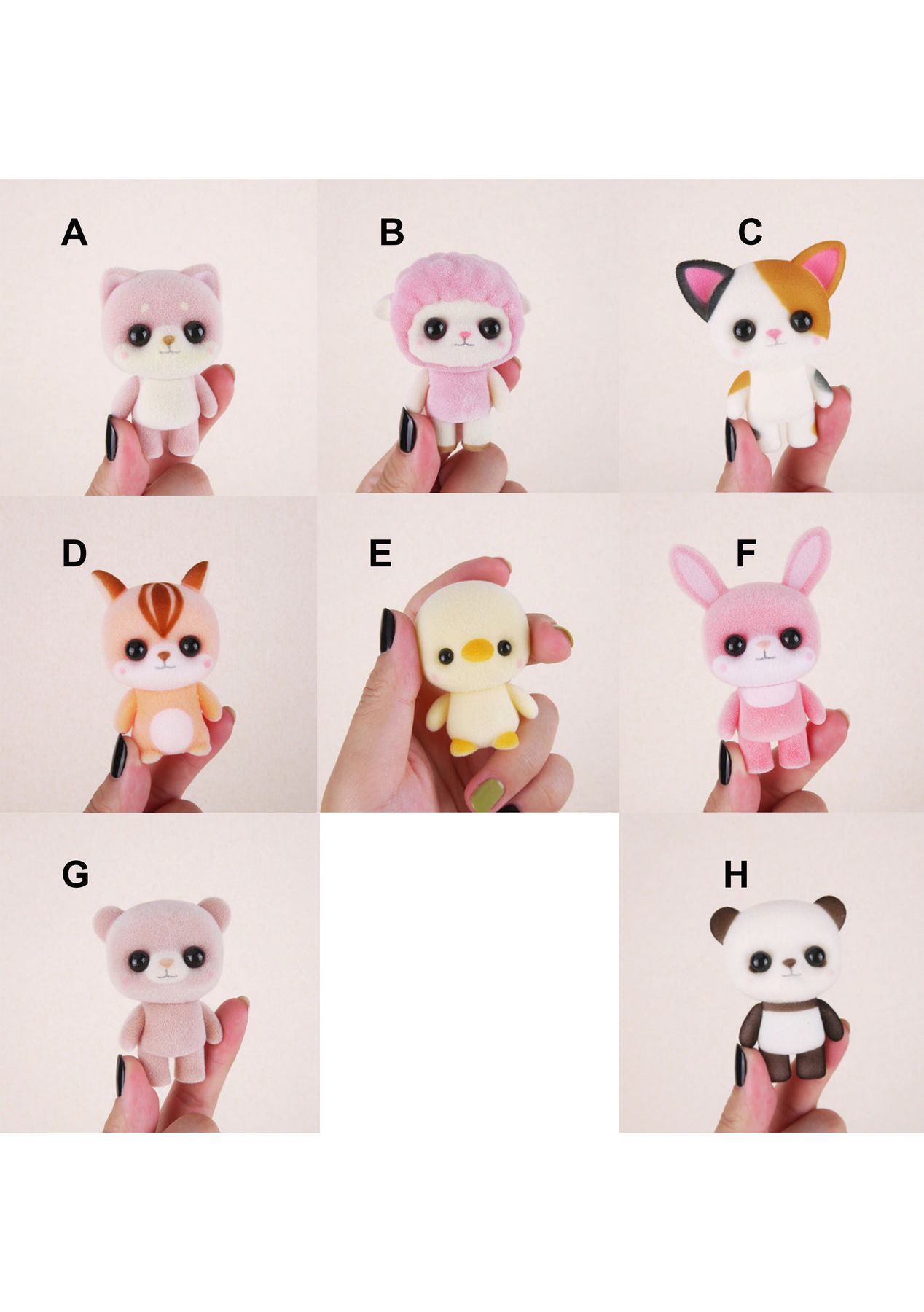 PVC Flocking Dolls/ Animals Toys GREAT Christmas Gift For Girls and boysMaterial: PVC, flocking(Imitation plush)Size: 7cm(Approximately)Stress Relief.Desktop decoration.The head and arms can be turned. Can be play with sylvavian family toys.
