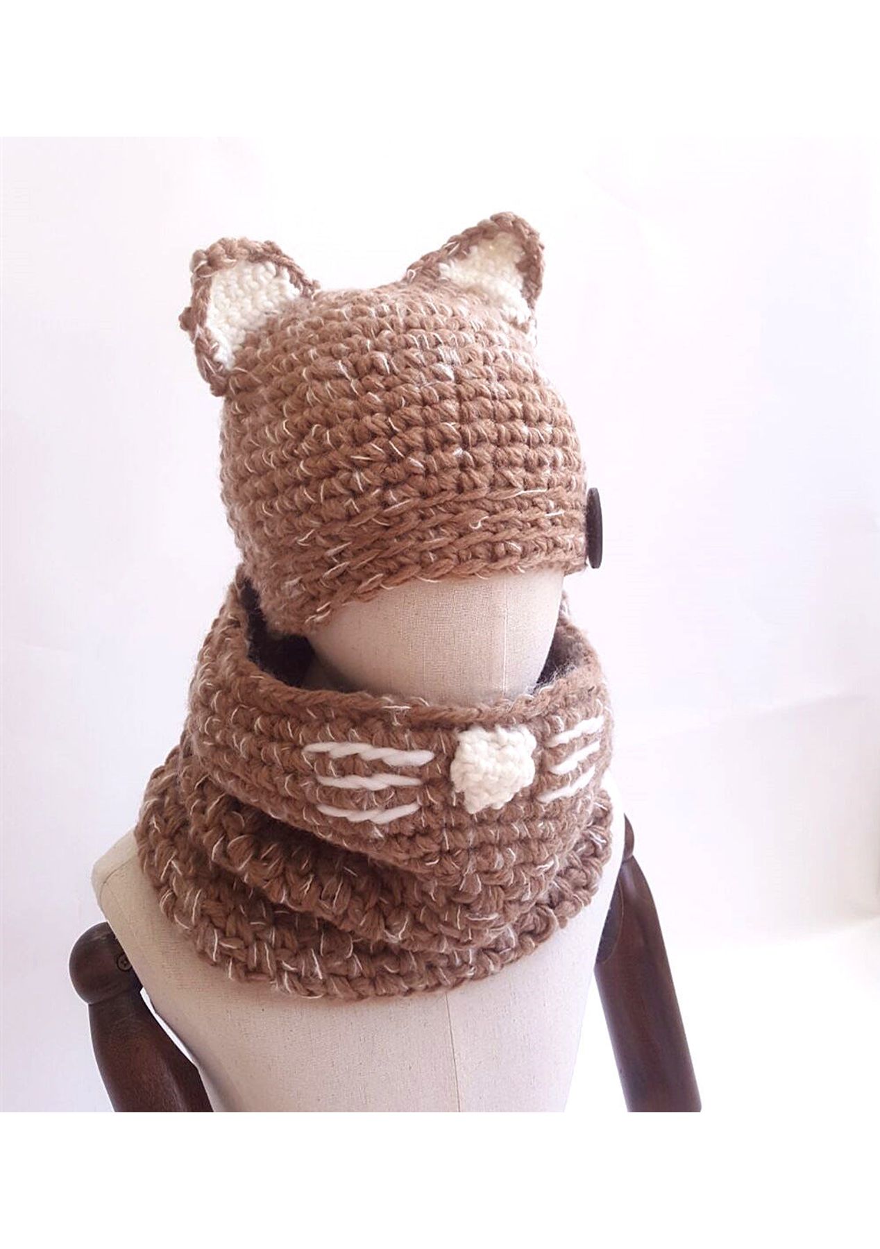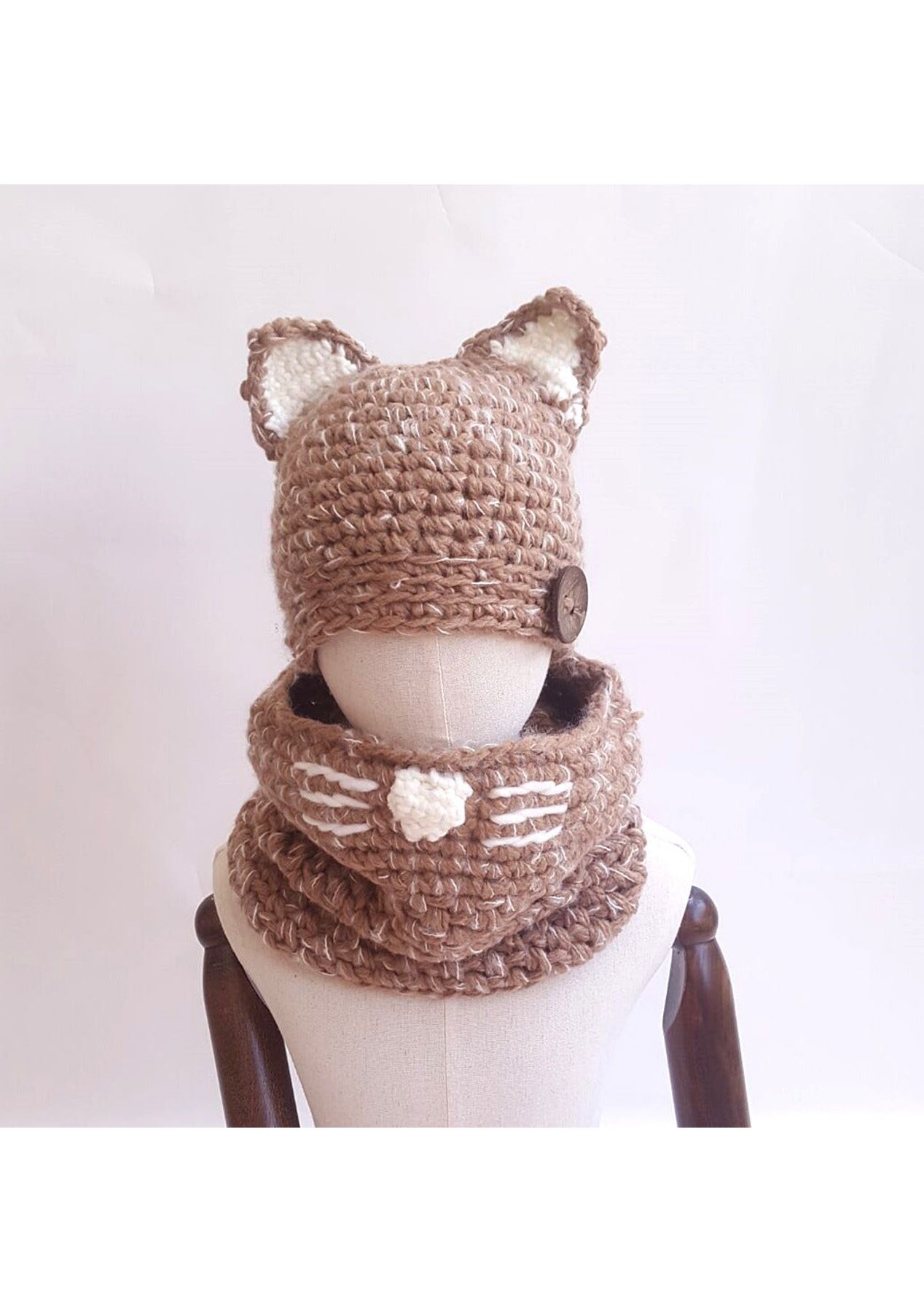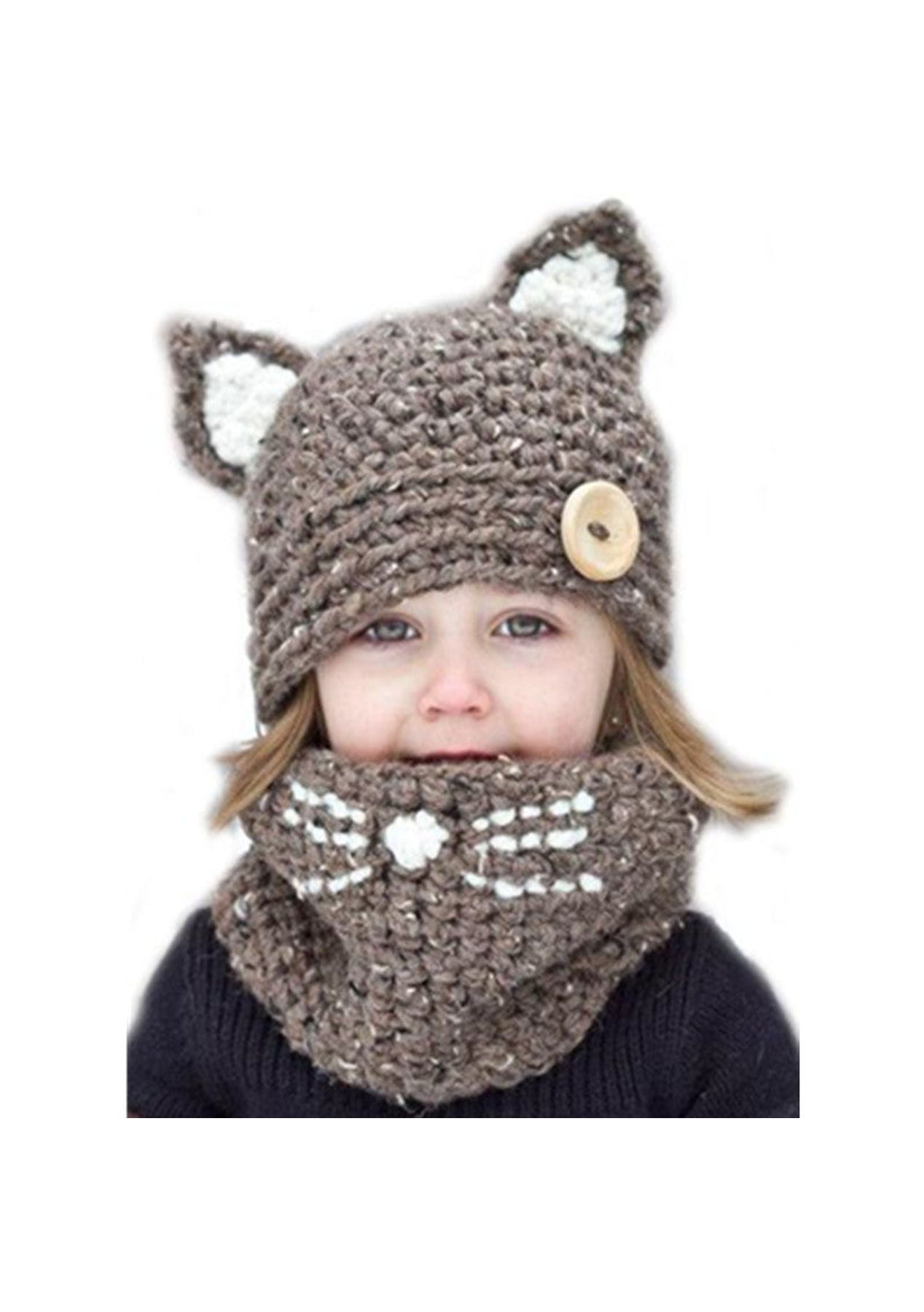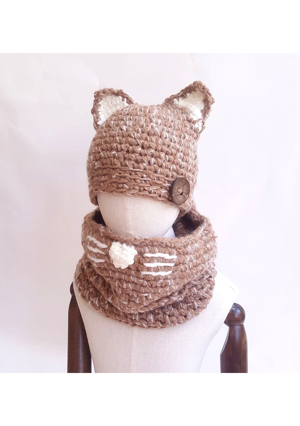 Mini Me - Fox Ear Kids Knitted Hat (3Y-8Y) - Khaki
