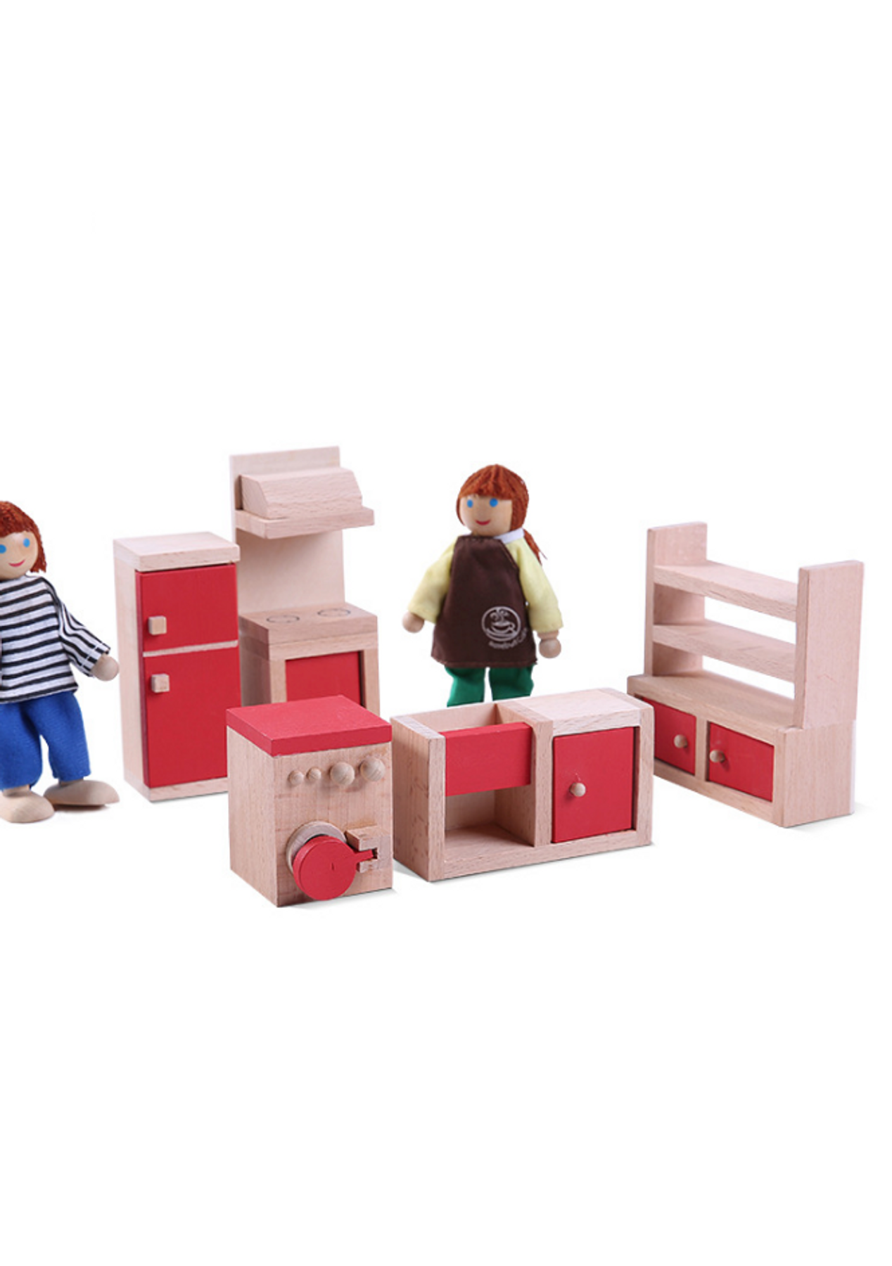 Wooden dolls house furniture sets to fit most standard size dollhouse! Made of beech wood Package size: 20cm x 12.5cm Please notice: the dolls are not included!!!!! :) Quality beech wood toy non toxic We have 6 set you can choose from : Kid's roomKitchenBedroomLounge room Bathroom Dinning room