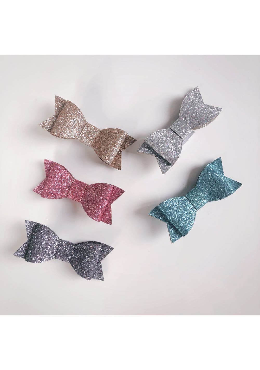 Clip size : 4.5cm long Stunning small glitter bows set on grippy alligator clips! High quality toddler hair accessories Glitter bow baby hair clips and baby headbands, sweet faux leather bows for your baby girl! 5 colours to choose.
