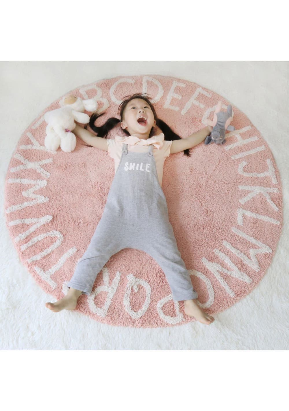Cozy Round Alphabet Rug Yes you read it right! Washable rugs and safe to do so at home. Made from 100% natural cotton and non-toxic dyes. These washable rugs by Lorena Canals are handmade by skilled craftspeople in India to the highest standard and ensuring socially responsible labor practices. As they are handmade each rug is unique, no two are the same. Made from: Cotton and non-toxic dyes dimensions: 128cm √∏ Weight: 1.8kg Wash by hands only.