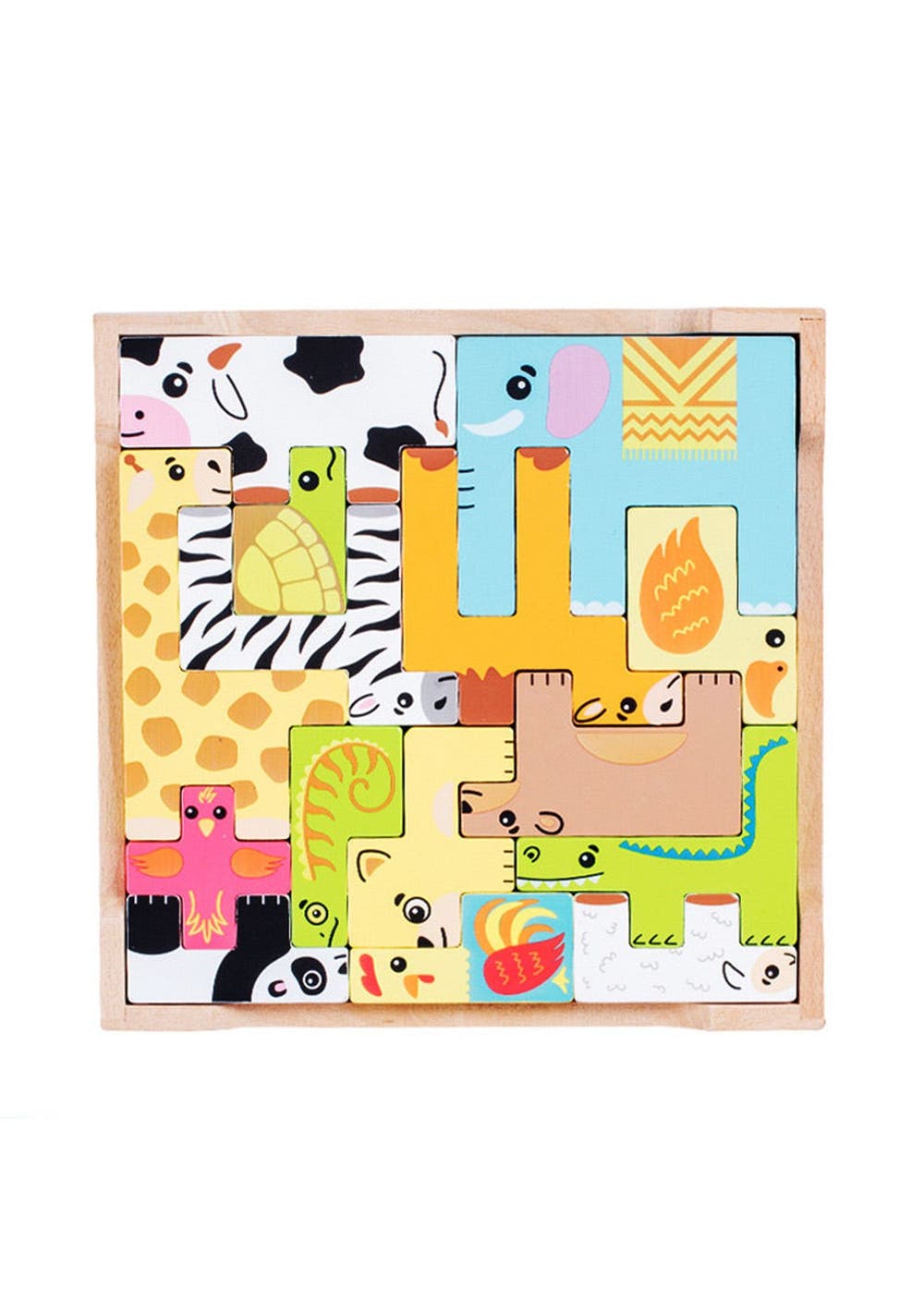 15 pieces little wooden animals Made of solid wood. Specifications: 22 * 22 * 1.5cmPaint material: water-based green paintWooden blocks type: building blocksBuilding block net weight: 0.6KG