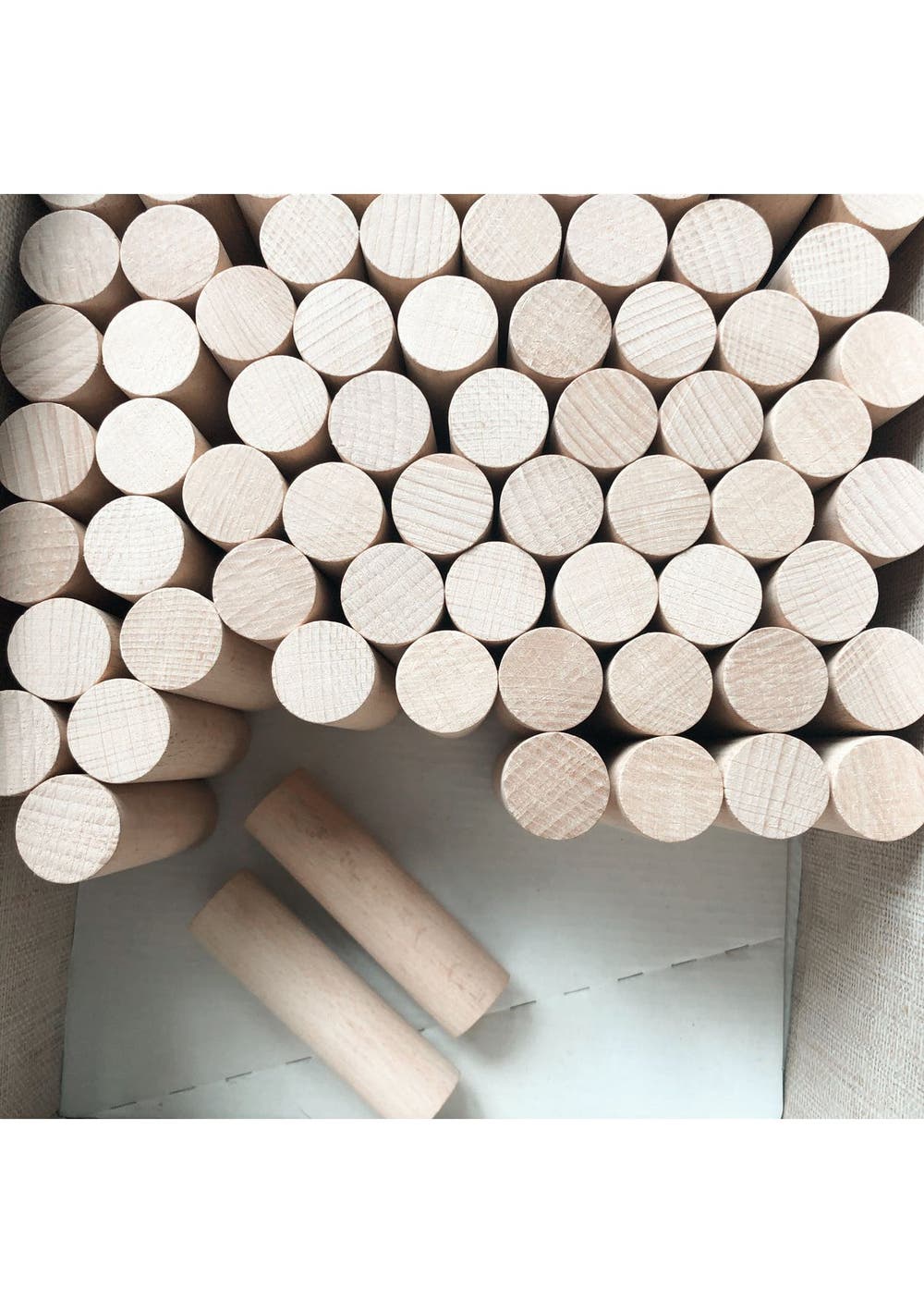 Solid beechwood sticks. Price is for 10 wooden sticks. Each is 10cm long * dimeter 2.8cm. Smooth surface. Good for kids to play in many creative ways. Can be use for DIY material.