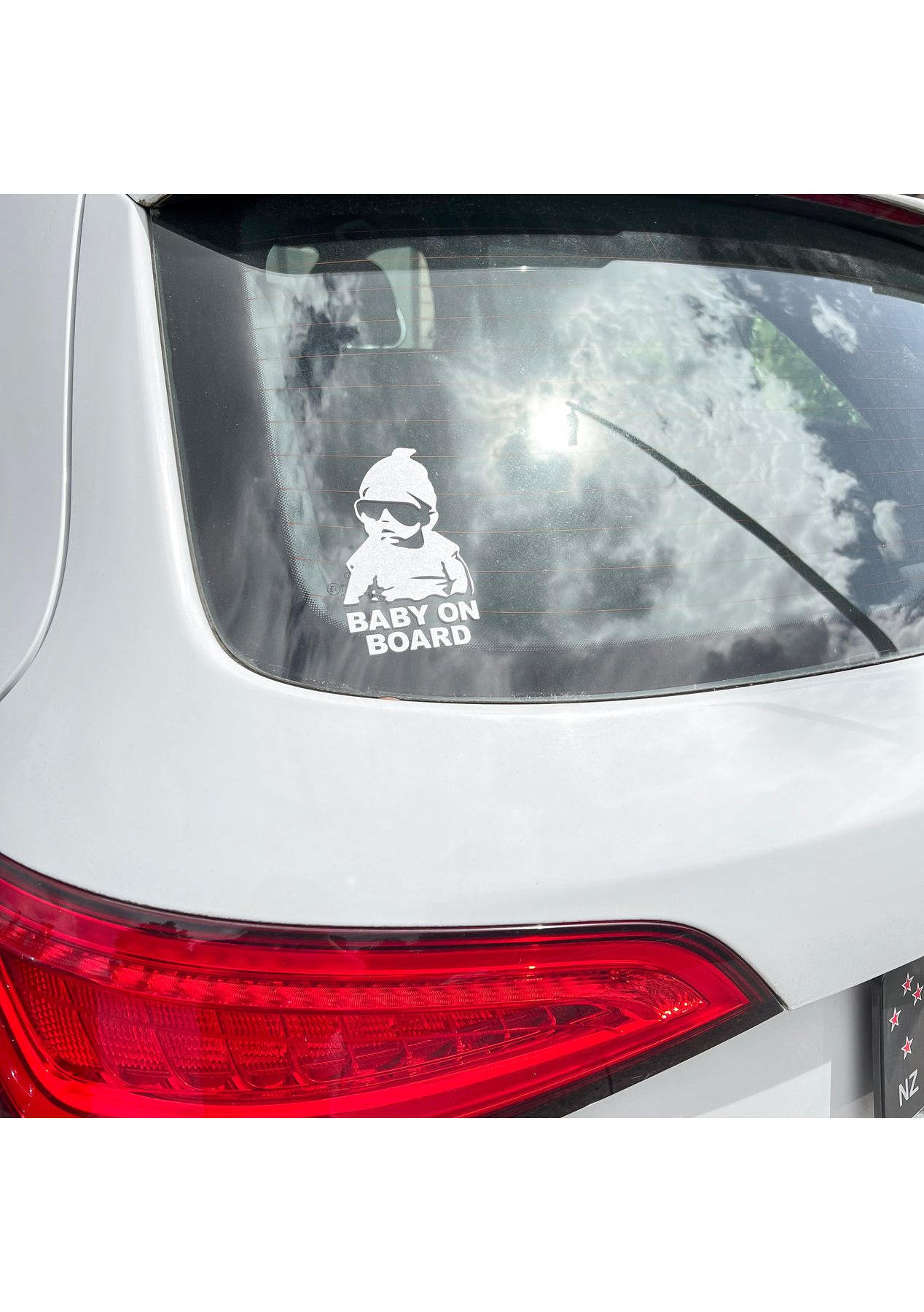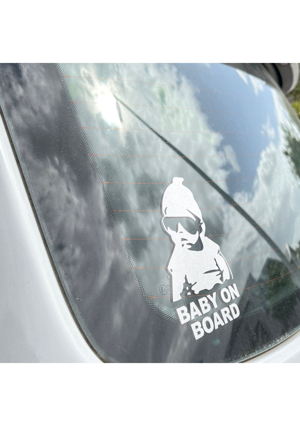 Baby on Board Sticker - Waterproof, Fade-resistant, self-adhesive There are easily removable without leaving stains or damage your wall. Size: 14x9cm . Material: outdoor Vinyl. Colour: Silver Strong visual impact. HOW TO USE1.Clean your car surface where will be paste and dry up2.Tear off the glue paper, and paste the sticker on your car. press and hold for some time 3.Wait for it to dryClear:Scratching off the edge of sticker gently, and tear off it totally. It will not leave trace.If you can't scratch off the edge, you can use blower make the glue hot, it will be teared off easily.
