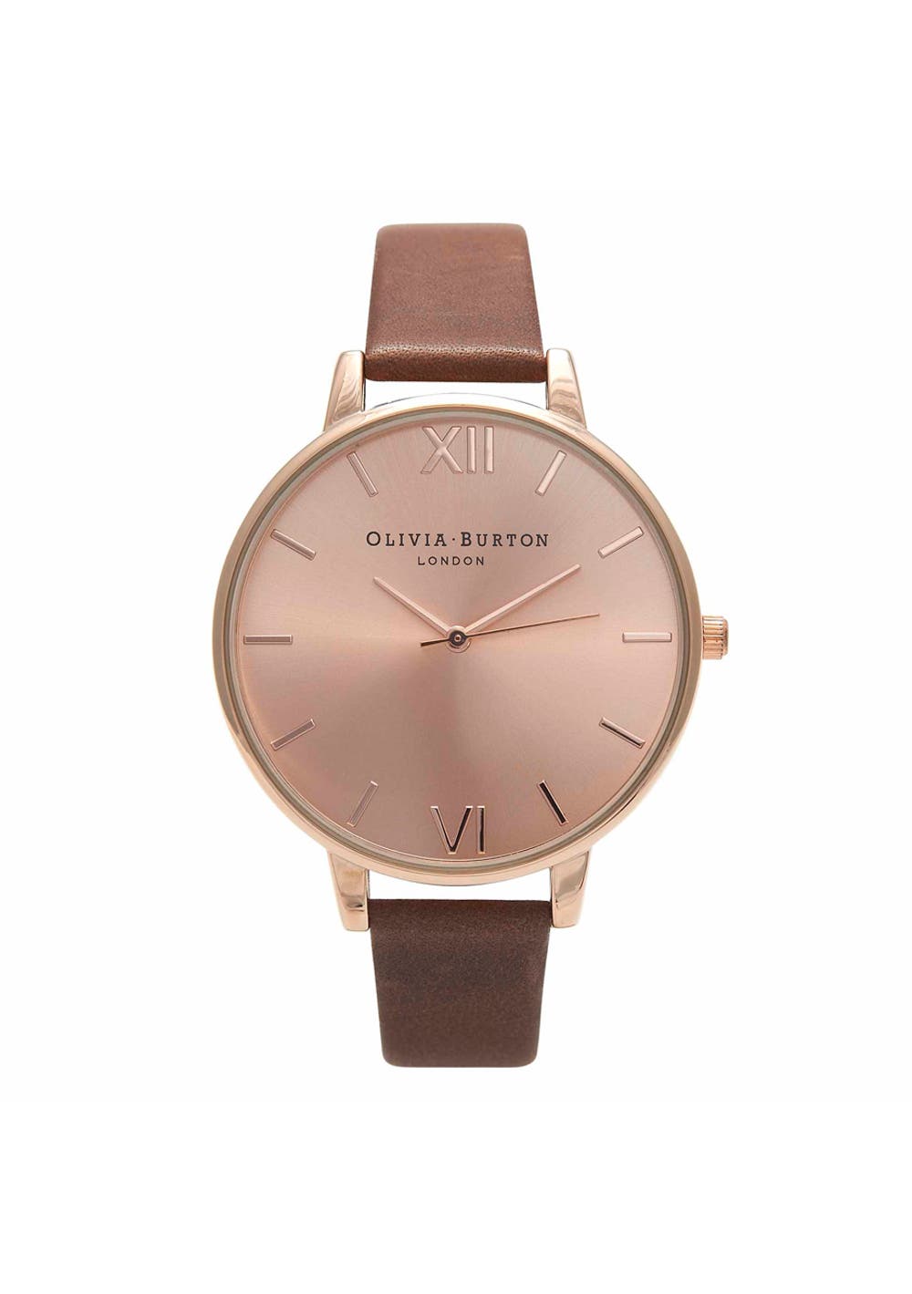 Olivia Burton Big Dial Collection Rose Gold Case Brown Strap