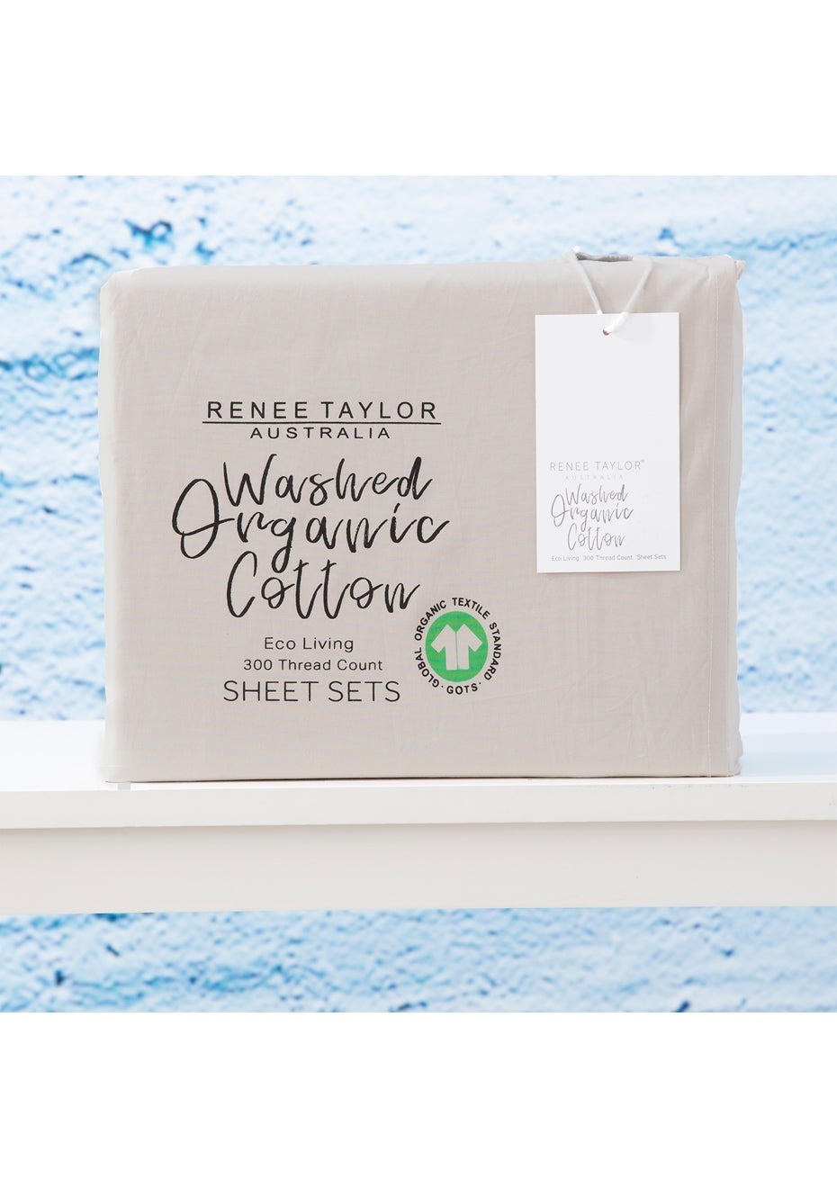 Renee Taylor 300 Thread Count 100% Organic Cotton Sheet Set - Mega Queen Moonbeam