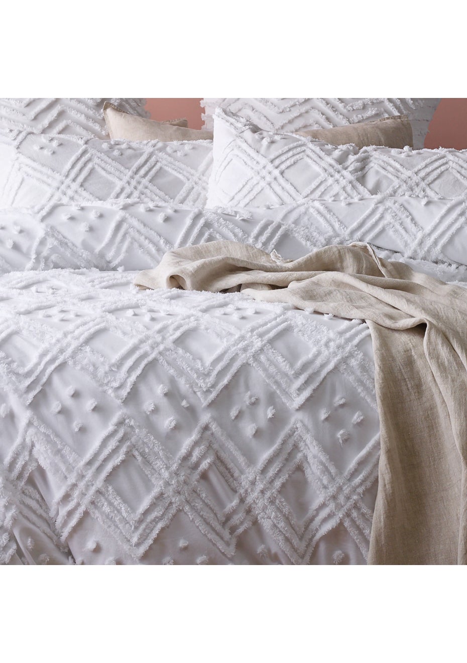 Park Avenue Medallion Cotton Vintage Washed Tufted Quilt Cover Set - Queen White