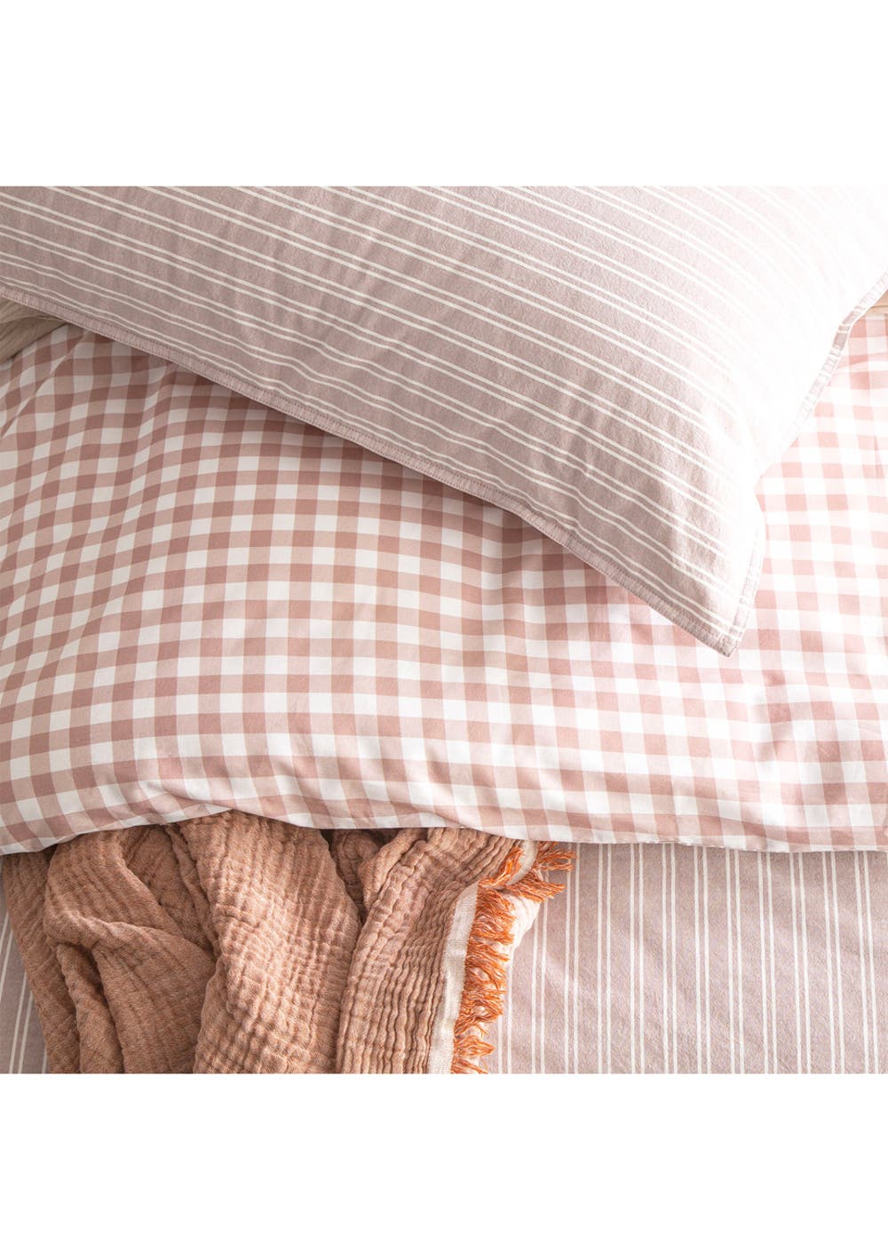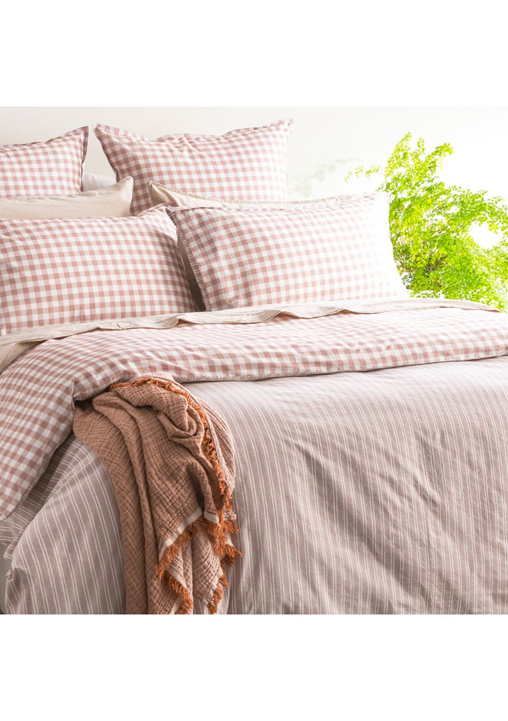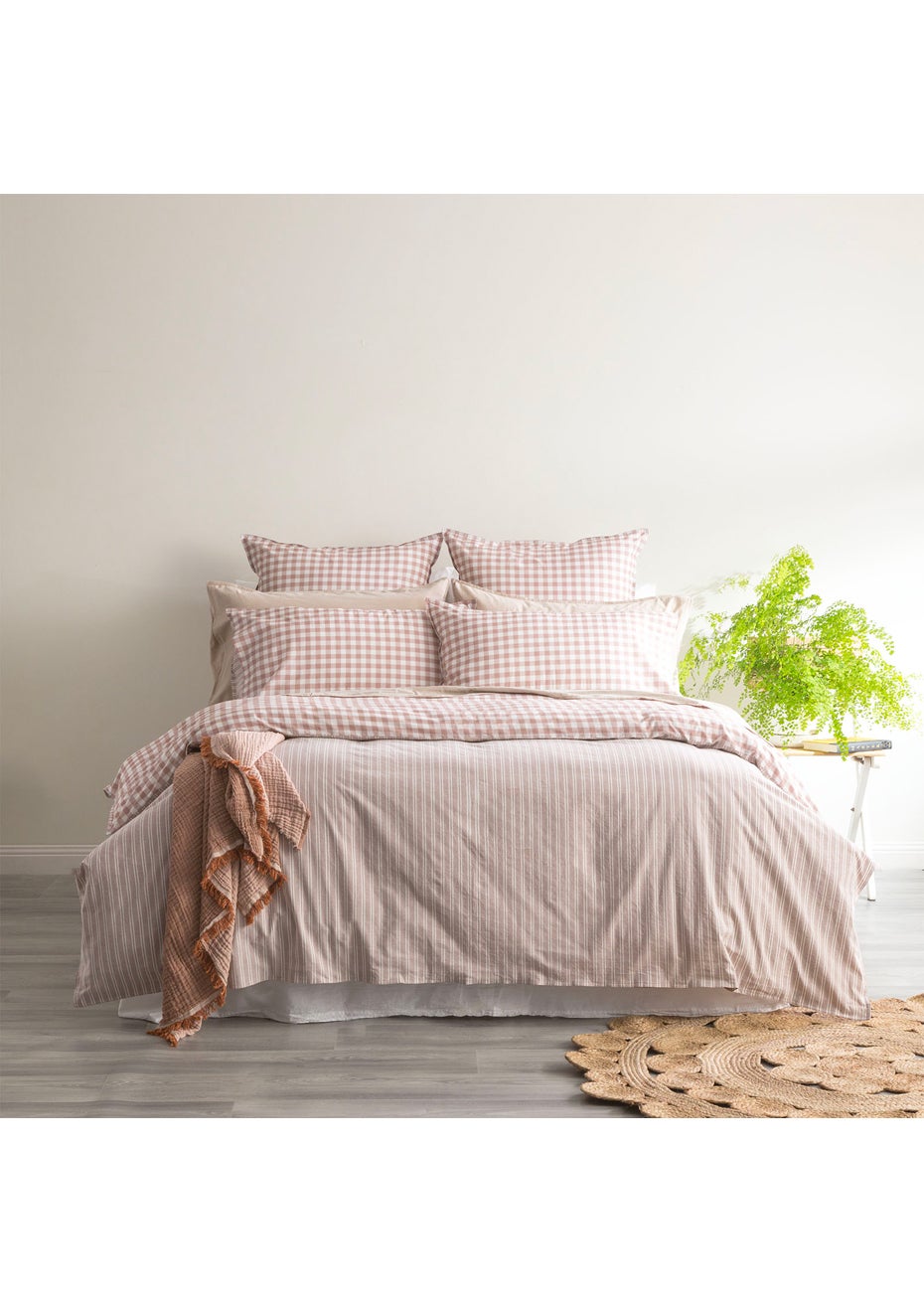 Alison Yarn Dyed Cotton Reversible Quilt Cover Set - Queen Clay