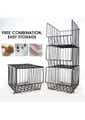Features  STACKABLE BASKETS: Baskets that can be stacked or used individually.  The cubby style metal basket shelves allow for easy storage with breathability to allow fruits and vegetable to ripen evenly.  Open air storage that is perfect for fruit / vegetables, dry food storage, or clothes  In front of basket stacker have a type opening which is convenient to take or put in anything such as fruit, food, vegetable, wine, spice, toys  Package Include  1 x 4 Tier Steel Wire Kitchen Storage Trolley  1 x Wheel Set Material: Carbon Steel Product dimensions (L): 42×36×87.5cm Weight: 5 kg