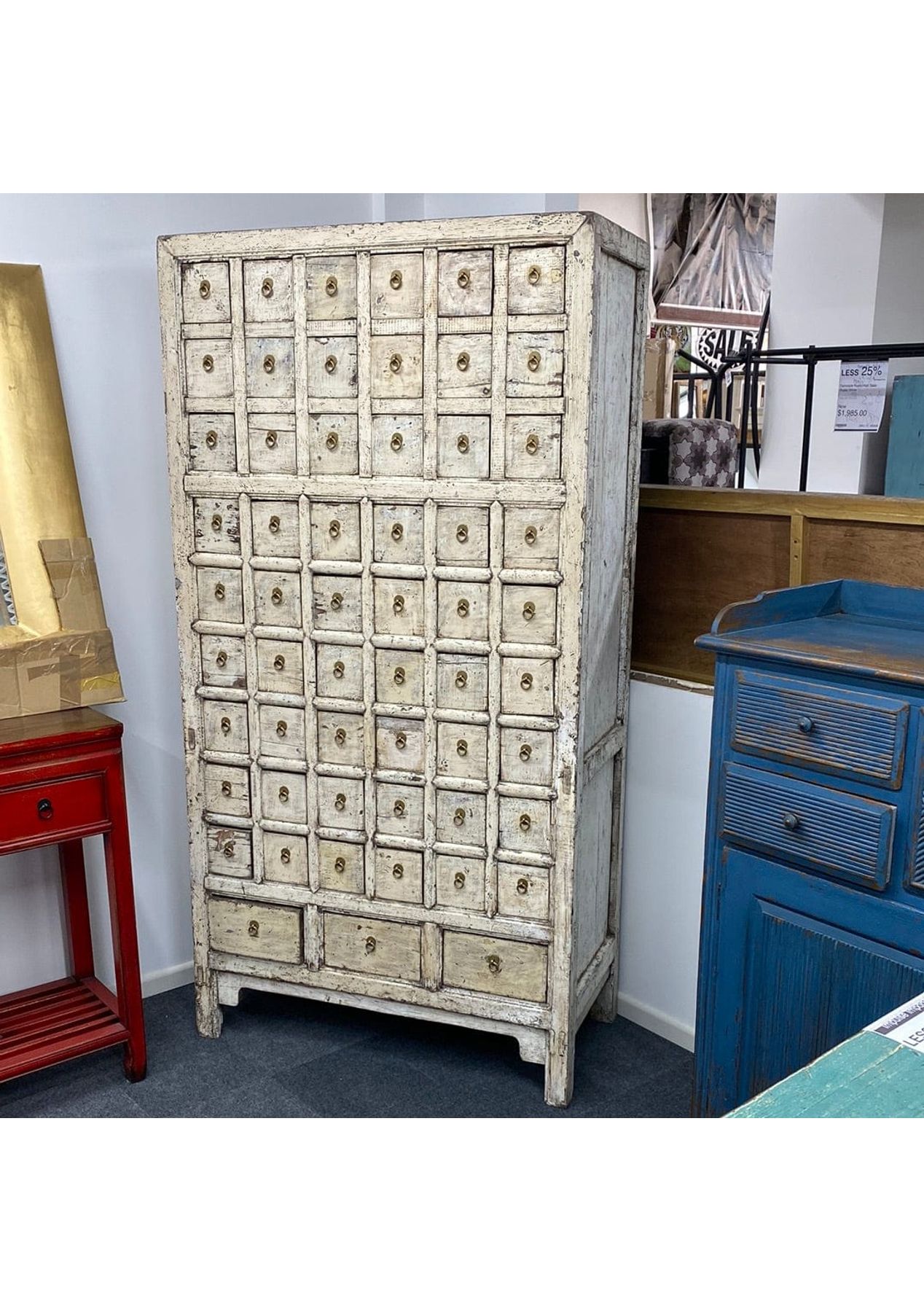 - Beautifully restored medicine cabinet - Substantial weight ; quite heavy - Antique Elm Wood frame work and the restoration has brought it back to life - Handmade ; village made - Approximately late C.1800 to early C.1900 Material Recycled Elm Wood Dimensions 100 cm x 50 cm x 195 cm