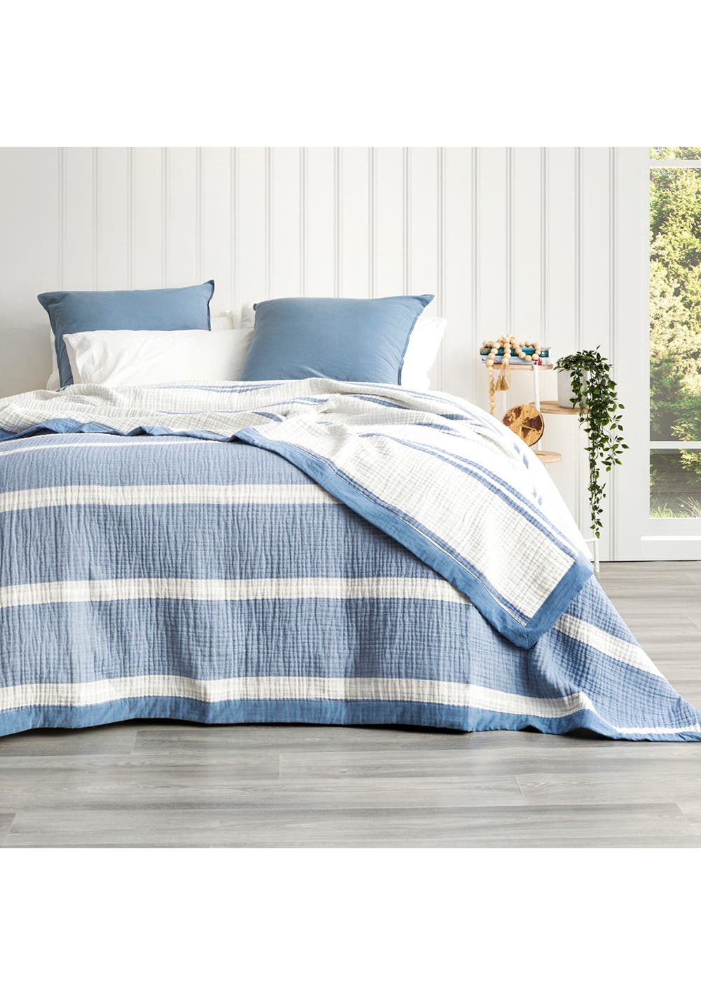 Renee Taylor Brighton Washed Cotton Yarn Dyed Textured Blanket Queen/King Artic