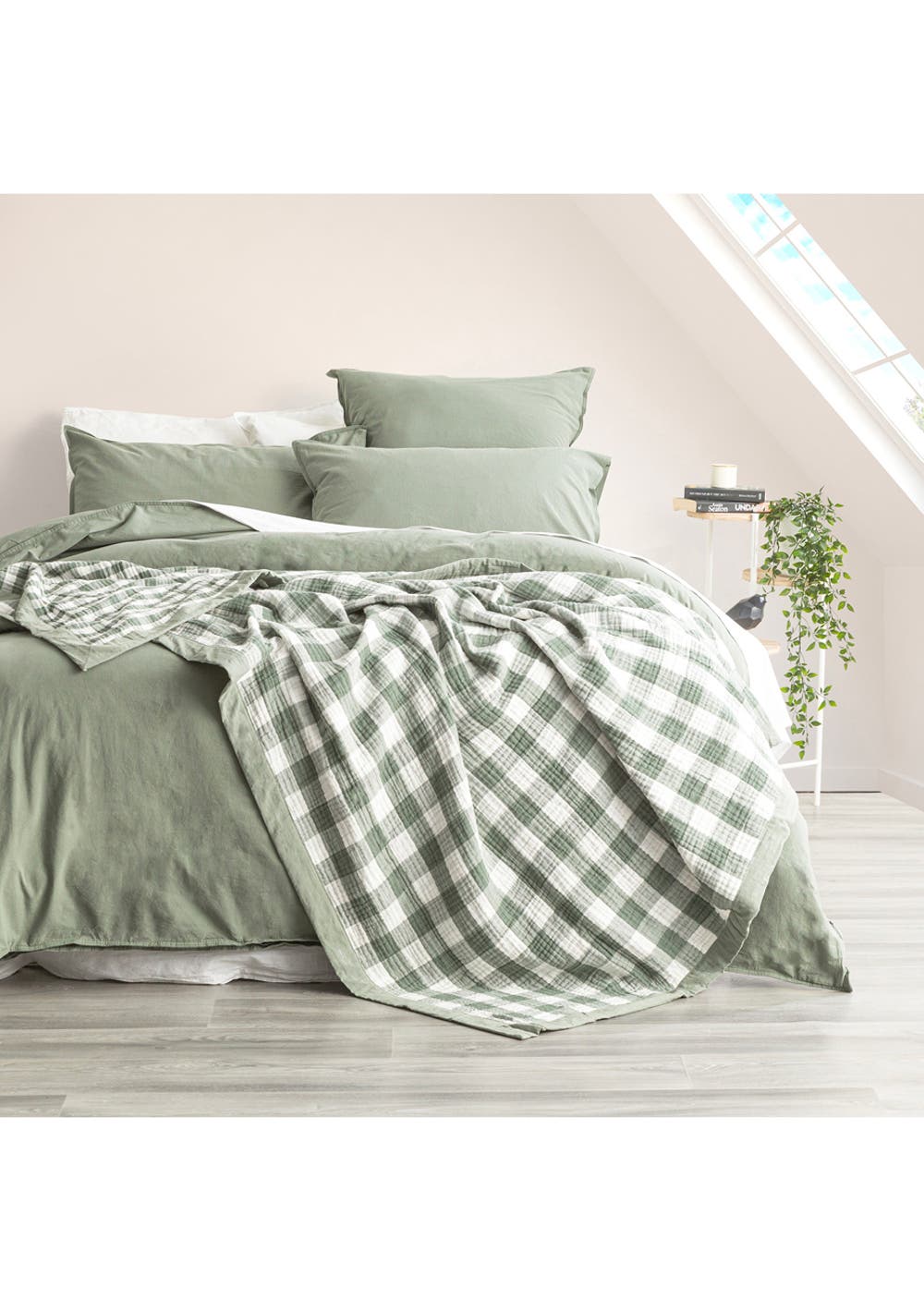 Renee Taylor Gingham Washed Cotton Yarn Dyed Revesible Textured Blanket Single/Double Emerald