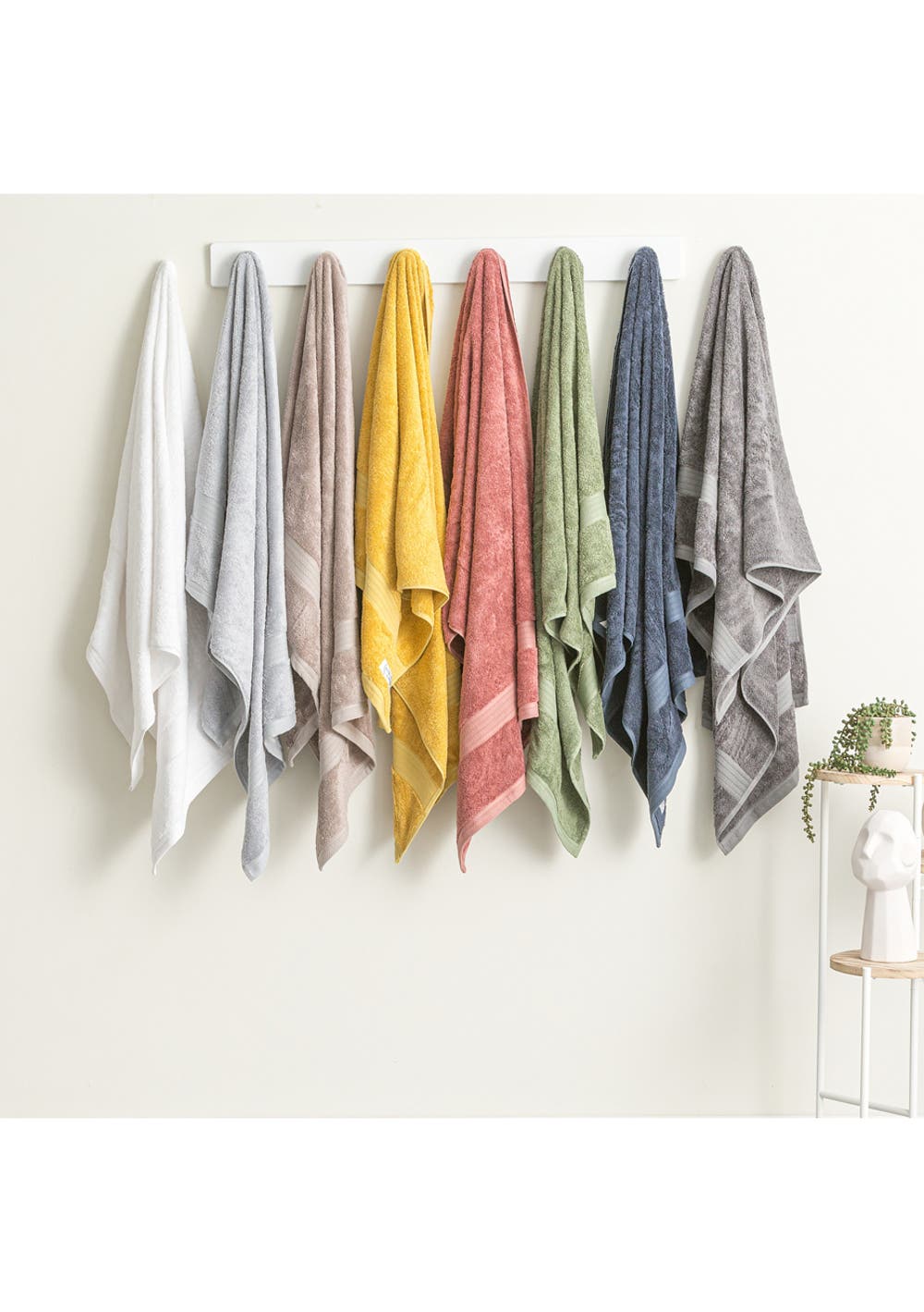 Renee Taylor Stella 650 GSM Super Soft Bamboo Cotton Towels Supremely soft and smooth, Stella Bath Collection are crafted from a blend of 65% Bamboo and 35% combed long-staple cotton. Bamboo is obviously anti-bacterial and mold resistant, gives top notch moisture wicking and has inherent hypoallergenic properties, making this range ideal. Medium weight, dense and extremely comfortable, Complete range feature a sewn in hanger loop. Key Features: - 65% Bamboo, 35% Cotton - 650 GSM Dense and extreme absorbency - Anti-bacterial and mould resistant - Complete range feature a sewn in hanger loop - Luxuriously Soft Pack Contains: - 2 x Bath Towel - 70 x 140 cms - 2 x Hand towel - 40 x 60 cms - 2 x Face towel - 33 x 33 cms - 1 x Bath mat - 50 x 80 cms (900 GSM) Wash Care: Wash prior to first use. Launder whites, colours, and prints separately. Warm machine wash (40c). Do not rub, soak, or wring. Do not bleach. Line dry in shade or tumble dry warm. Do not iron. Do not dry clean (x). To maintain optimum performance of this towel, we recommend that you avoid using fabric softeners, as they decrease the towel's absorbency. If you have a pulled thread, do not pull it. Simply snip off the loop with sharp scissors. Trimming a pulled thread will avoid further pulling & will not affect the durability or performance of your towel. It is quite normal for a cotton towel to lint or fluff in the few initial washes. This will diminish with subsequent washes & tumble drying. Remember to clean out the filters of your washing machine & tumble dryer. Made in Pakistan.