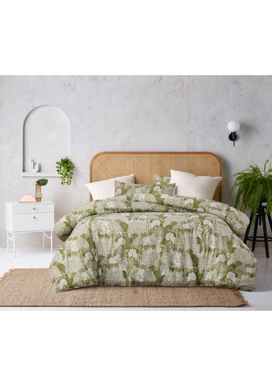 Accessorize Bedroom Collection - Otway Moss Green Washed Cotton Quilt Cover Set - Super King Bed - Moss Green