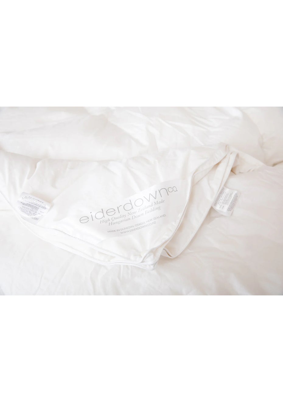 This duvet combo is the perfect all-year round solution for your bedroom. The 50/50 duvet is thin and cool enough to be the ideal light covering for summer, while the 80/20 duvet will add that extra bit of warmth needed for the cooler spring and autumn temperatures. Combined, these two duvets guarantee that you'll stay snugly warm even throughout the coldest winter nights. Made in New Zealand 100% of our Down is independently certified to the Responsible Down Standard Fill Autumn - 80% Hungarian Duck Down, 20% Hungarian Duck Feather Fill Summer - 50% Hungarian Duck Down, 50% Hungarian Duck Feather Fill Power: 80% - 705 in3 50% - 450 in3 Cover - Sanitized® 100% cotton sateen, 400 thread count Made using the baffled box style construction When to use: Summer Duvet - Late Spring & Summer Autumn Duvet - Autumn & early Spring Dome/Clip together for Winter 5 year guarantee of unconditional fine workmanship and quality Sizes: Single to Californian King* *Please note when looking for Duvet covers that our Californian King is 270 x 240cm. This is sometimes referred to as 'Australian Super King'. If you are having trouble finding covers this size, please contact us and we can assist you. All Hungarian Down has been specifically sourced for it's quality, and checked by our trained staff on arrival to make sure it is of the highest standard, and therefore provide you with an incredibly high standard product. Why Hungarian Duck Down? Hungarian Duck Down is a premium quality down, with great insulating and ventilation properties. Compared to other duck breeds, its body weight and size is exceptional thanks to the unique breeding and feeding. Although duck down is looked at as inferior to goose down, Hungarian Duck Down is still a great choice for premium down bedding. Hungarian Down also has higher recovery power than other down. Recovery power is a new measurement which indicates the down material’s ability to retain it’s shape, form and overall quality. Many factors attribute to why Hungarian Down has higher recovery power Special climate Free range breeding Green GMO free, fibre-rich feed Closeness of natural clean water