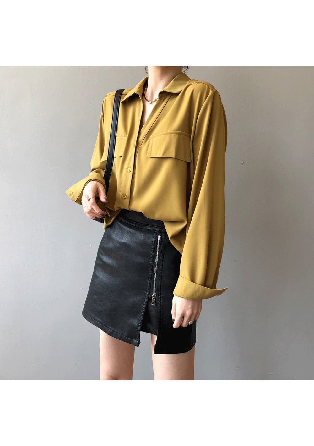 Womens Yellow Long Sleeve High Low Button Down Shirt