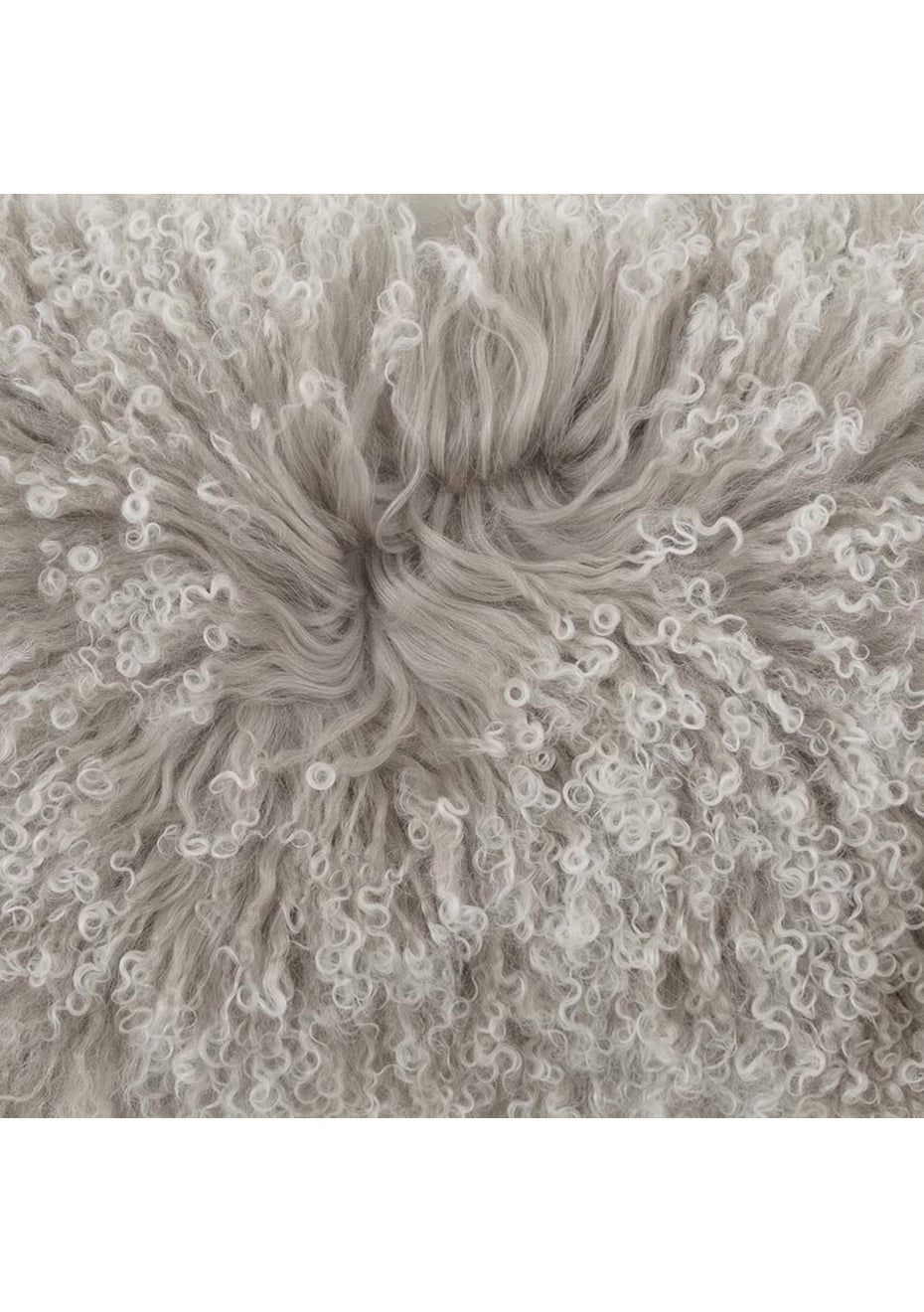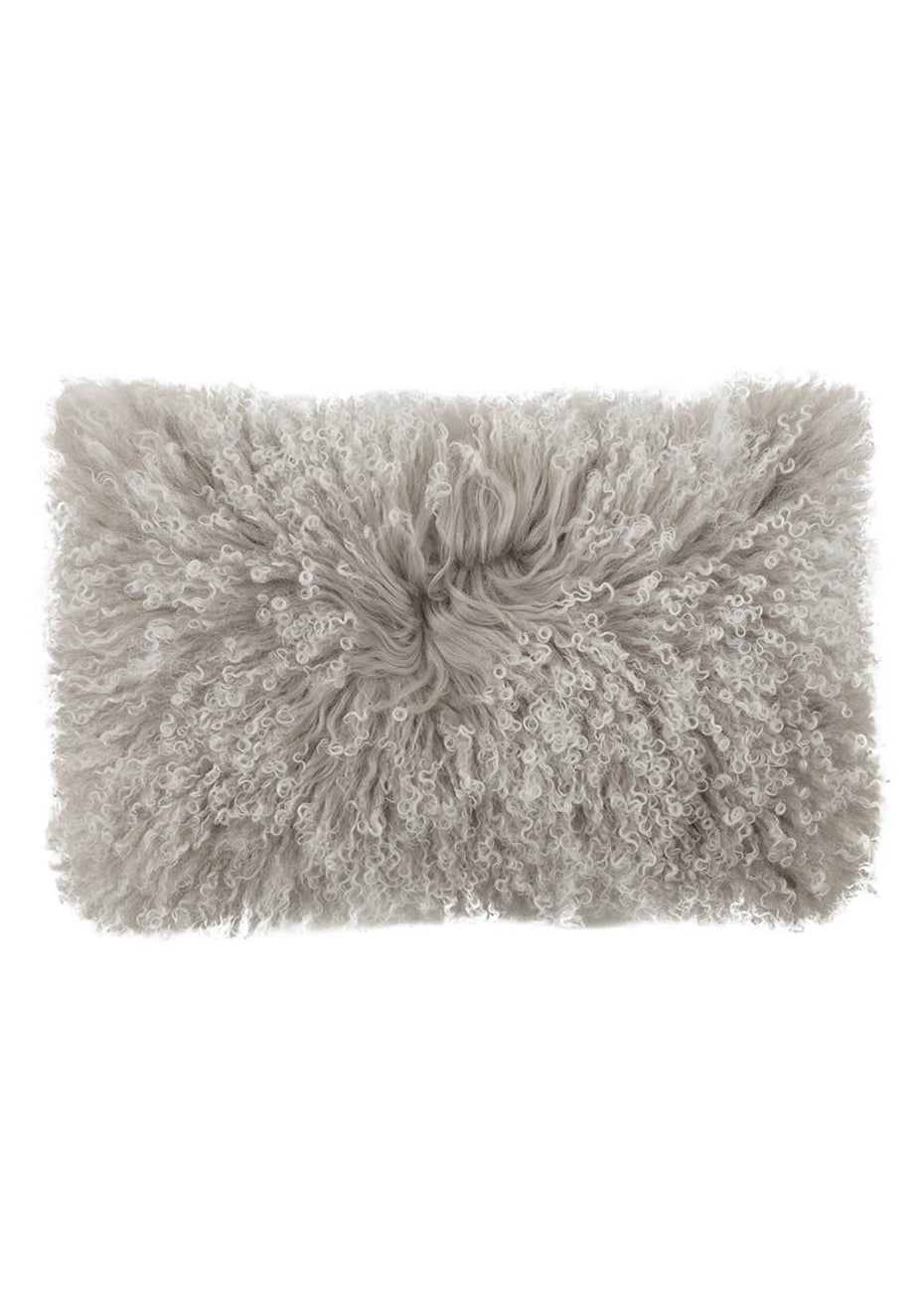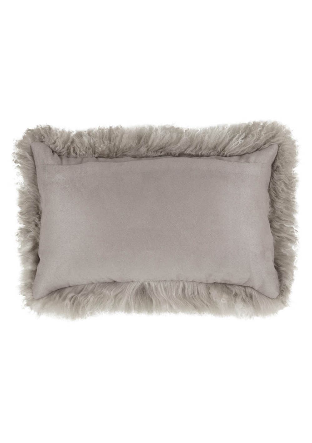 Mongolian Sheepskin Cushion Eucalyptus Grey Snow Tip Lumbar (30 X 50Cm)