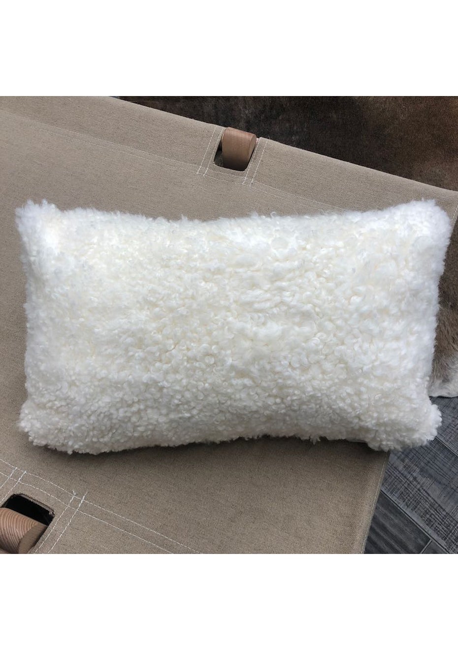 Australian Natural Shearling Sheepskin Cushion White 30 X 50Cm