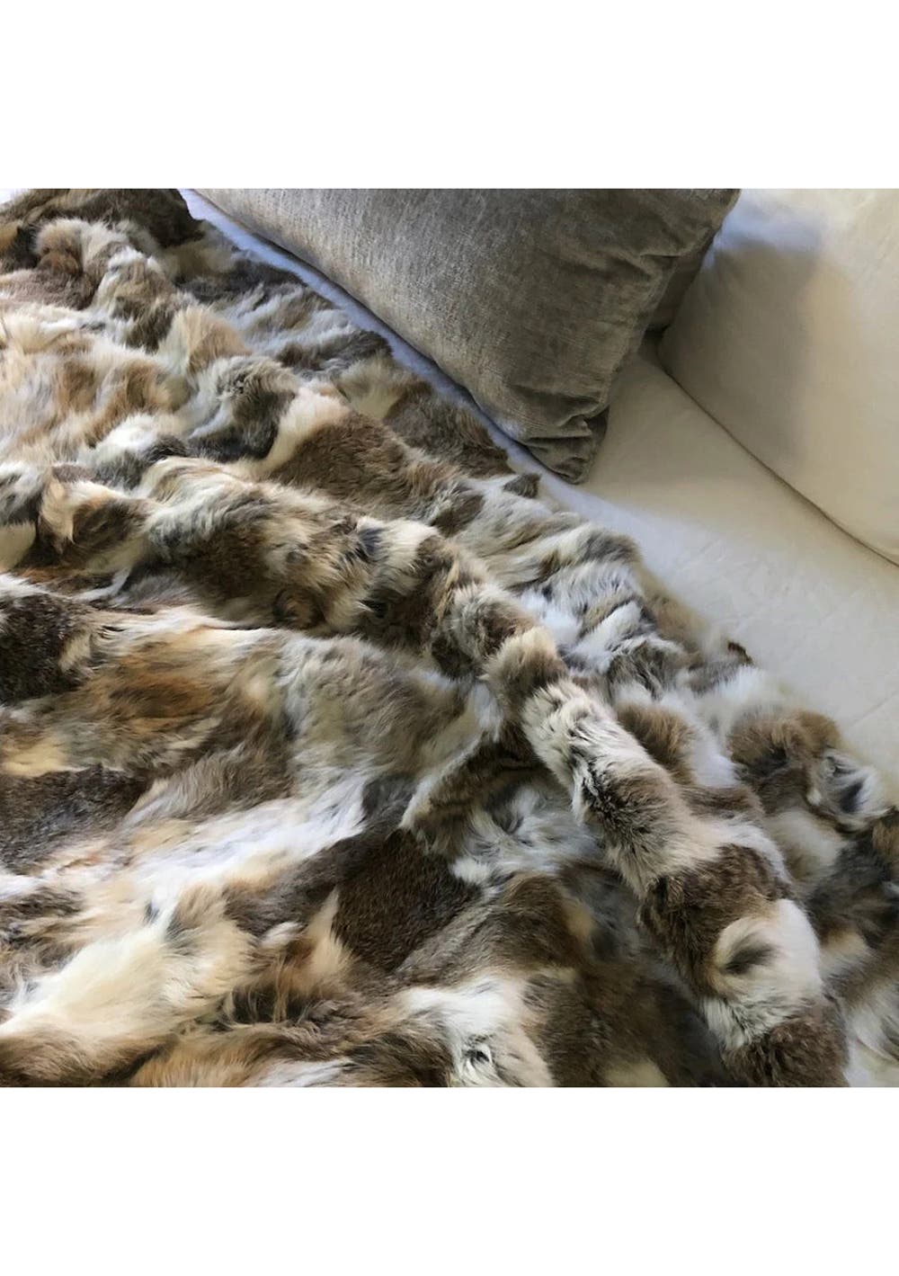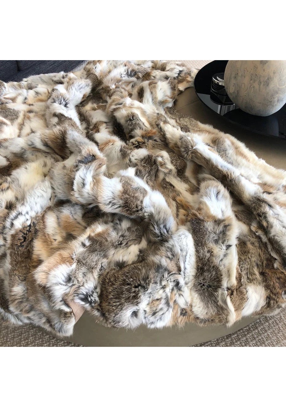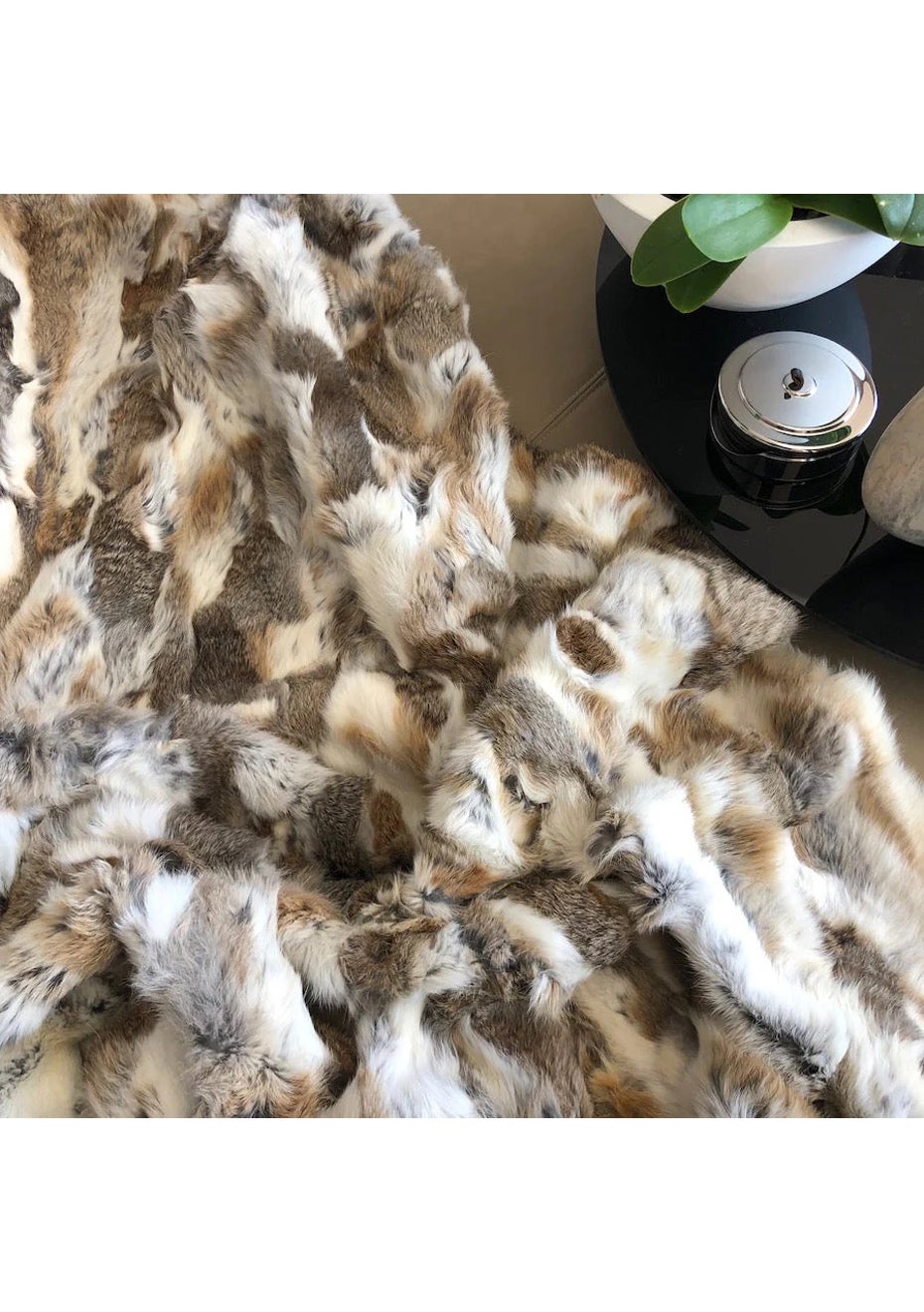 Hides of Excellence ethically sourced natural rabbit hide blankets, in a combination of white and brown fur, are a luxurious and cosy decor accent for either the bedroom or lounge area. Also available in natural white, grey, brown and a combined grey and white, these sumptuously soft throw blankets feature the rabbit fur on one side with the reverse a soft matching complimentary tone velour. The size of these blankets measures approximately 180cm by 120cm. Rabbit fur has a smooth silky soft texture which translates into a sustainable decorative accessory that is both elegant and functionally warm. We take great care to ensure the rabbit fur is processed under strict environmentally friendly conditions, free from harmful chemicals. This product is safe for adults, children, pets, and of course gentle on the planet. Available for immediate delivery.