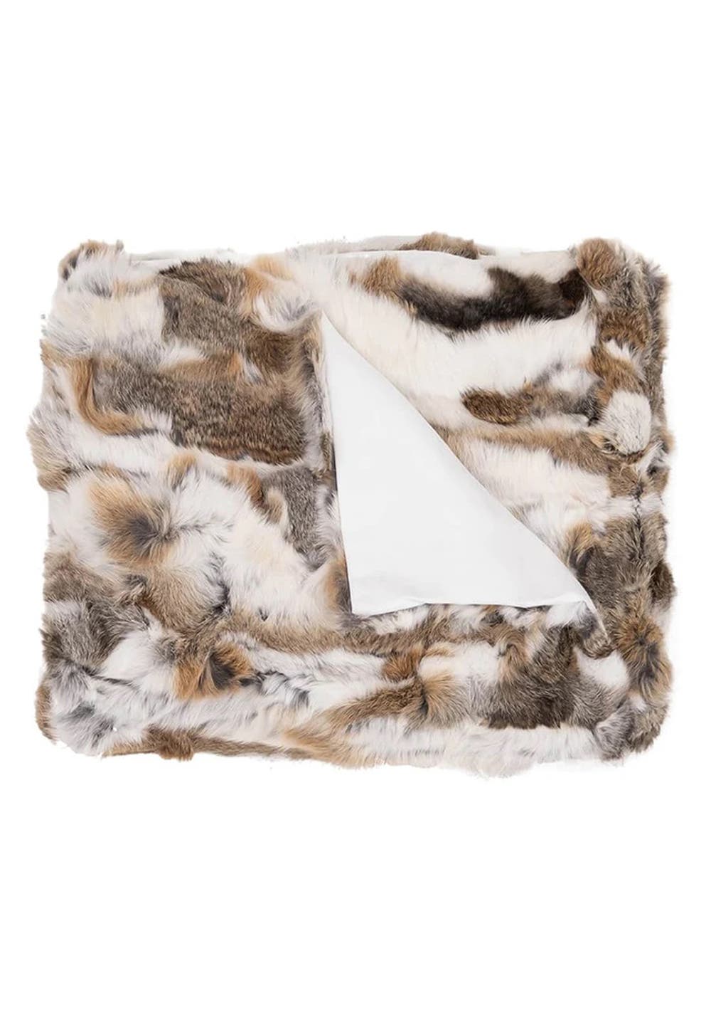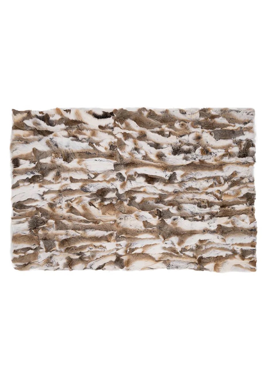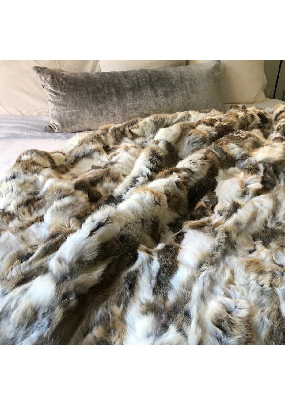 Hides of Excellence ethically sourced natural rabbit hide blankets, in a combination of white and brown fur, are a luxurious and cosy decor accent for either the bedroom or lounge area. Also available in natural white, grey, brown and a combined grey and white, these sumptuously soft throw blankets feature the rabbit fur on one side with the reverse a soft matching complimentary tone velour. The size of these blankets measures approximately 180cm by 120cm. Rabbit fur has a smooth silky soft texture which translates into a sustainable decorative accessory that is both elegant and functionally warm. We take great care to ensure the rabbit fur is processed under strict environmentally friendly conditions, free from harmful chemicals. This product is safe for adults, children, pets, and of course gentle on the planet. Available for immediate delivery.