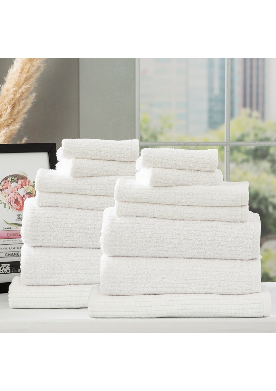 Renee Taylor Cobblestone 650 GSM Cotton Ribbed Towel Pack 14 Piece White