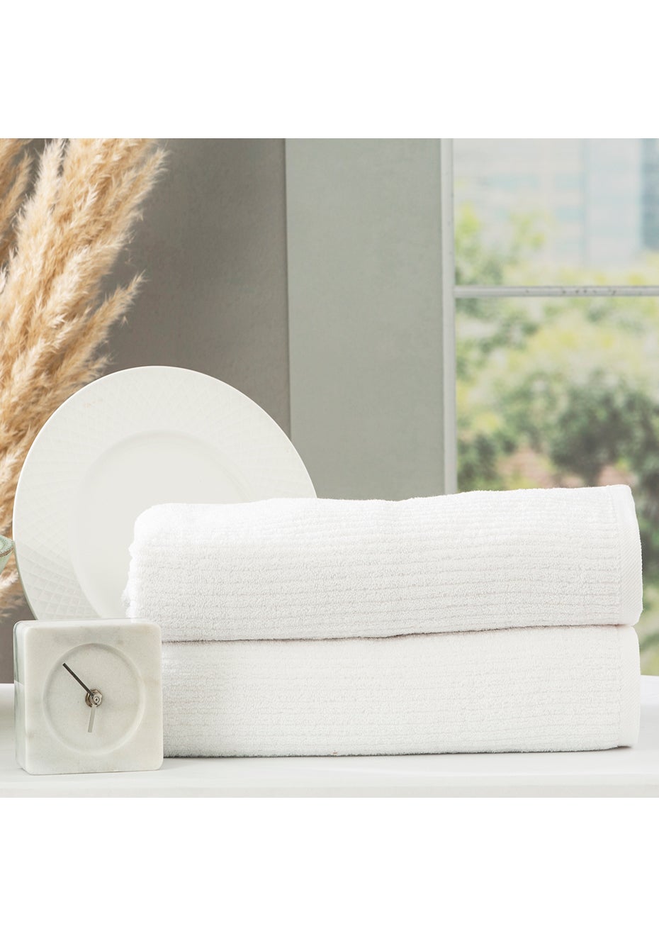 Renee Taylor Cobblestone 650 GSM Cotton Ribbed Towel Pack 2 Pack Bath Sheet White