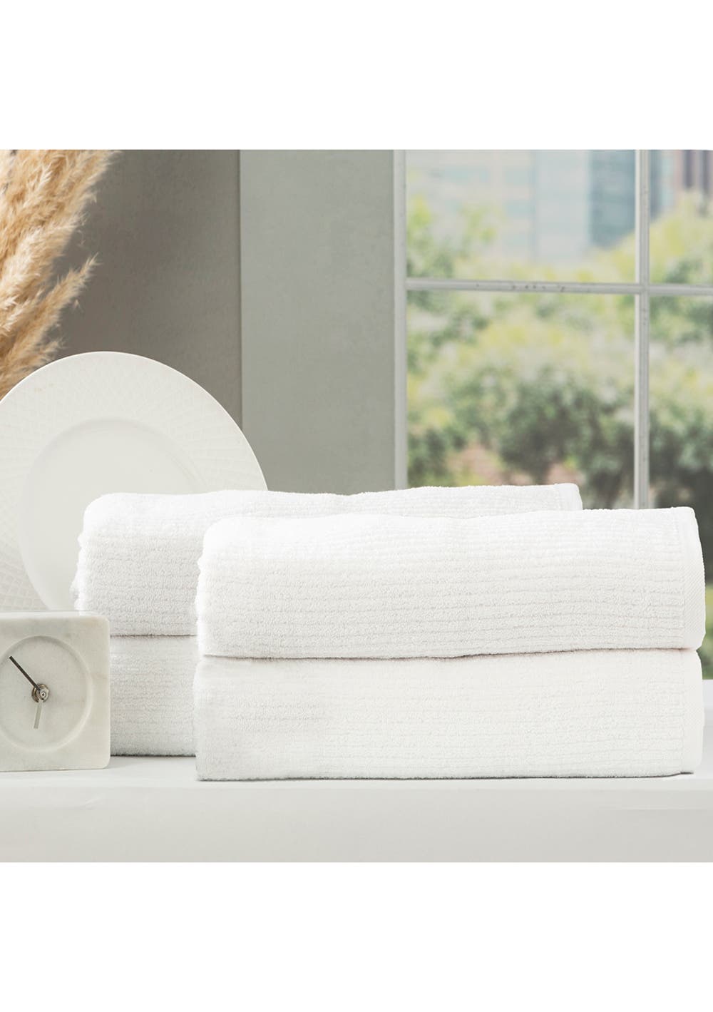 Renee Taylor Cobblestone 650 GSM Cotton Ribbed Towel Pack 4 Pack Bath Sheet White