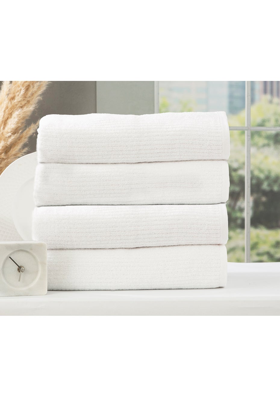 Renee Taylor Cobblestone 650 GSM Cotton Ribbed Towel Pack 4 Piece Bath Towel White