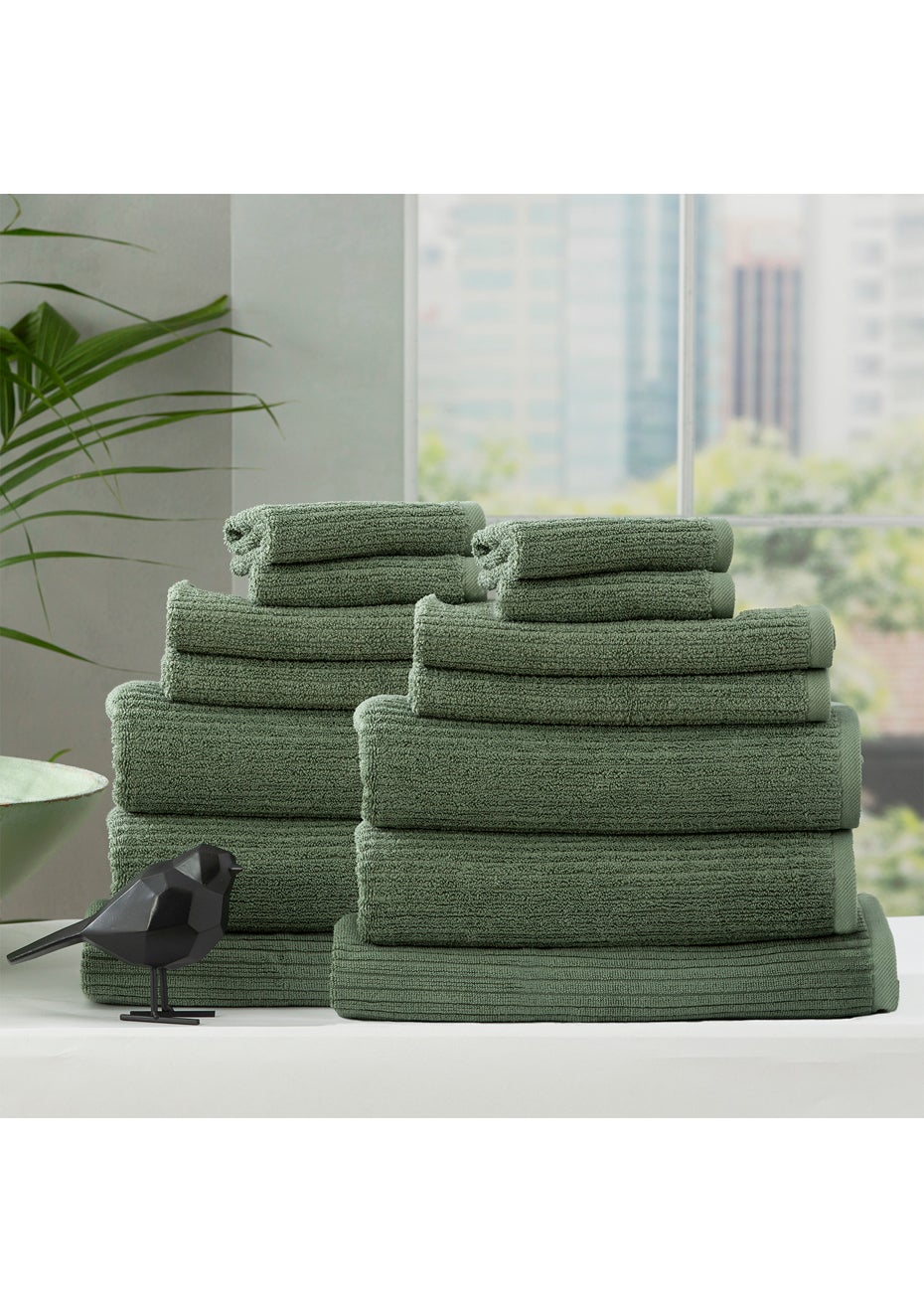Renee Taylor Cobblestone 650 GSM Cotton Ribbed Towel Pack 14 Piece Sage