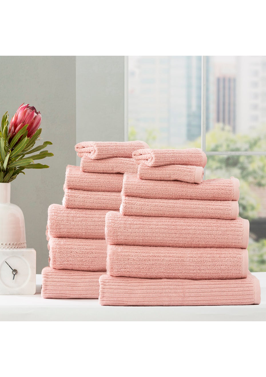 Renee Taylor Cobblestone 650 GSM Cotton Ribbed Towel Pack 14 Piece Blush