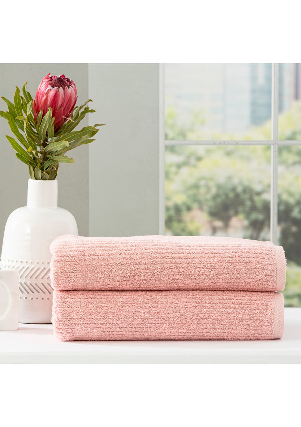 Renee Taylor Cobblestone 650 GSM Cotton Ribbed Towel Pack 2 Pack Bath Sheet Blush
