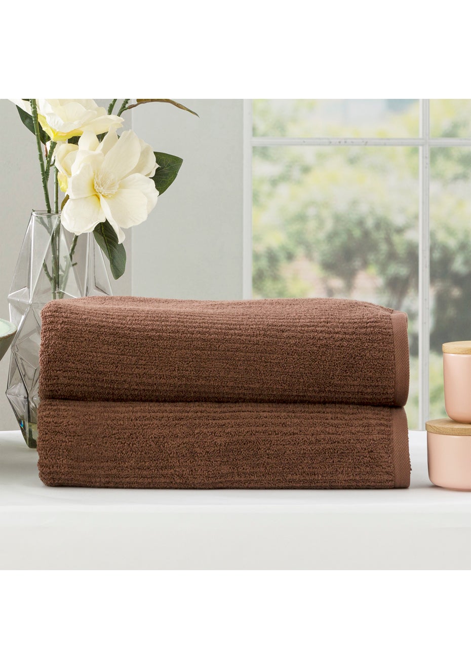 Renee Taylor Cobblestone 650 GSM Cotton Ribbed Towel Pack 2 Pack Bath Sheet Toffee