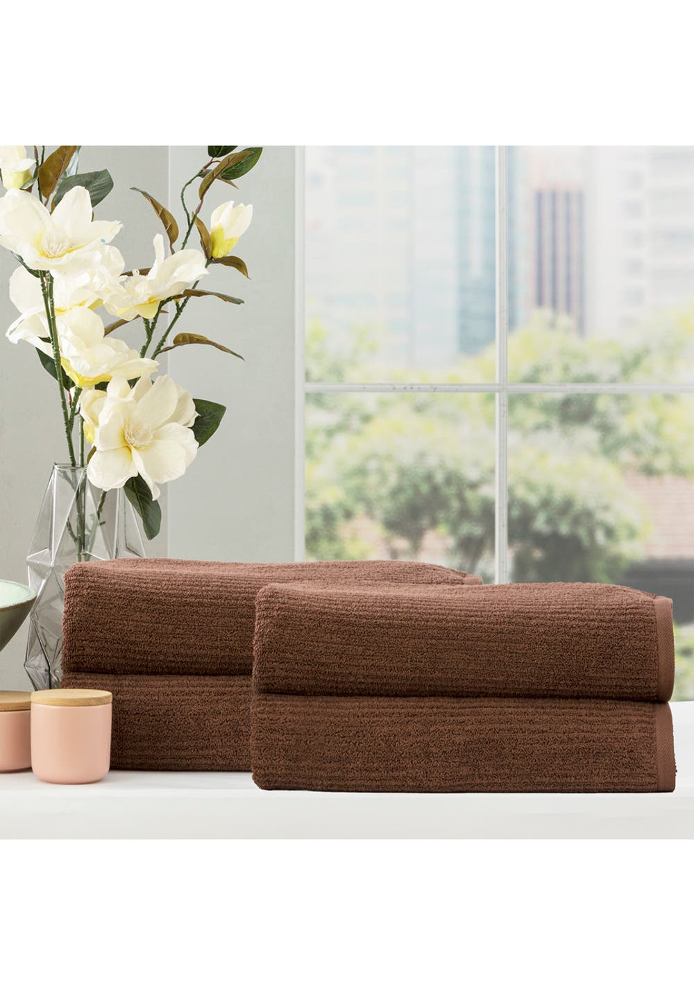 Renee Taylor Cobblestone 650 GSM Cotton Ribbed Towel Pack 4 Pack Bath Sheet Toffee